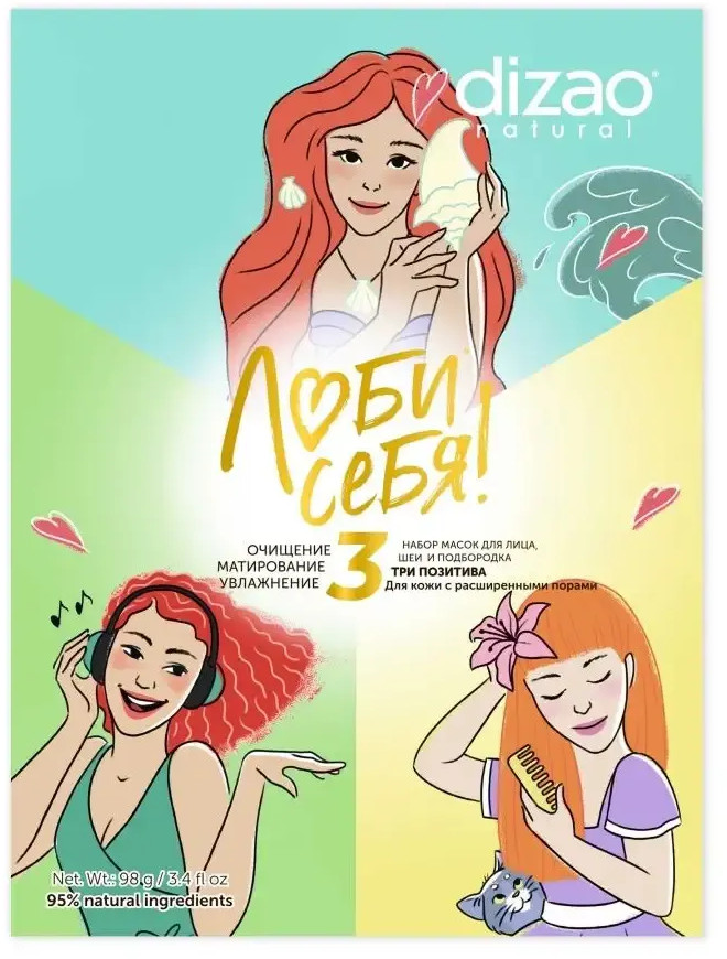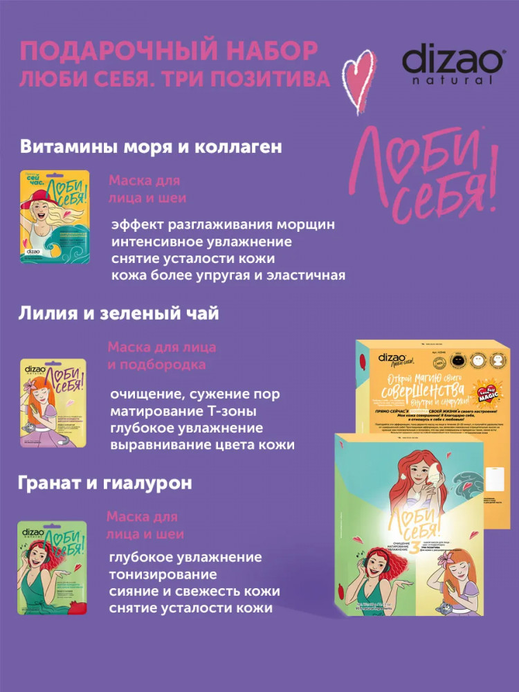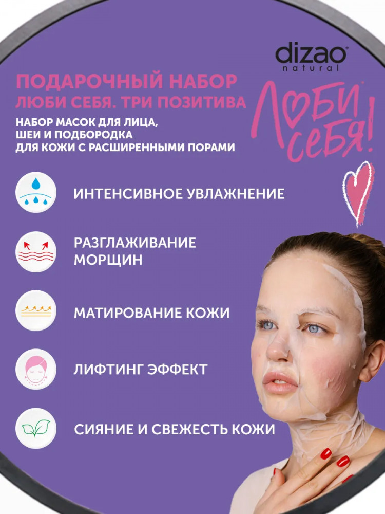 Dizao natural Набор масок для лица, шеи и подбородка «Три позитива»