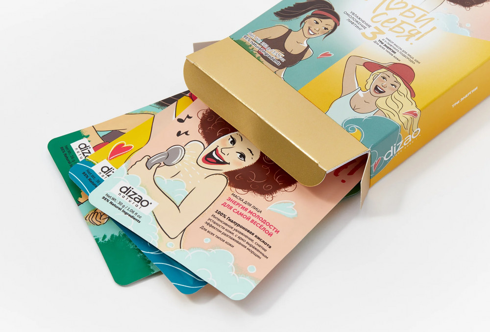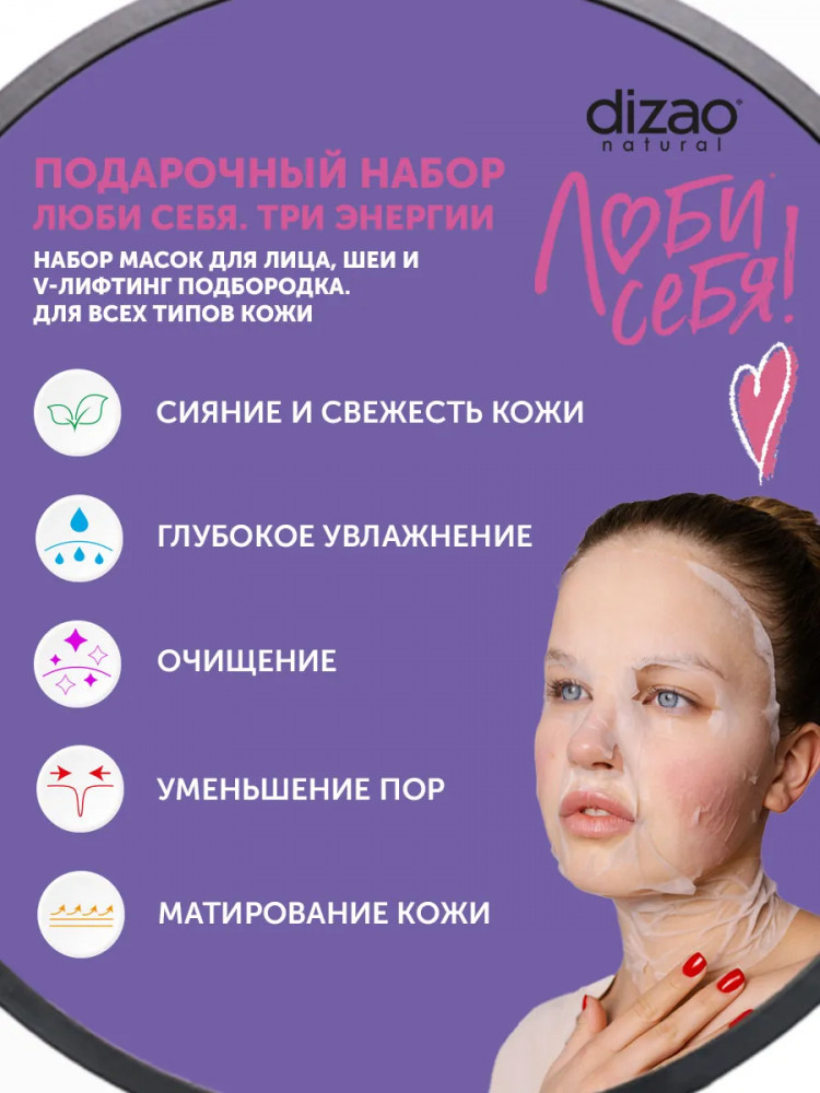 Dizao natural Набор масок для лица, шеи и подбородка «Три энергии»