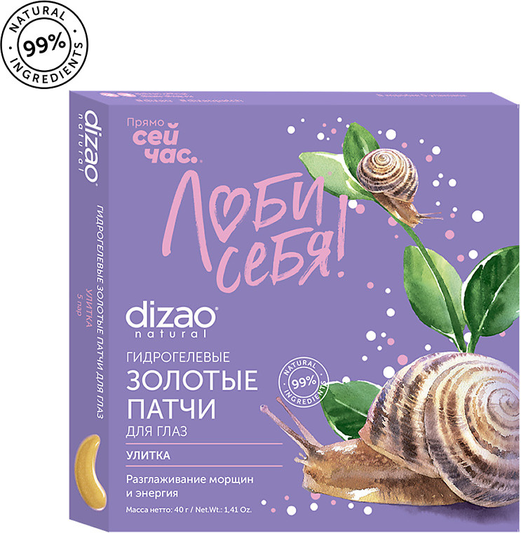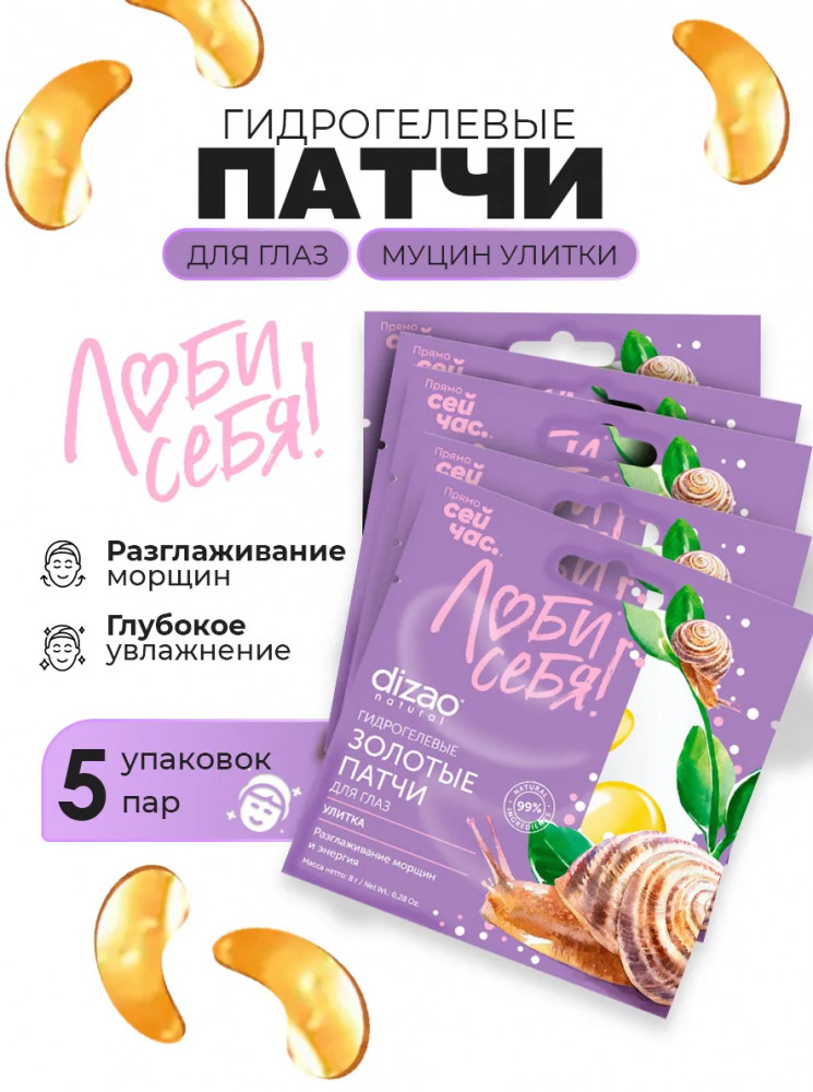 Dizao natural Набор патчей для глаз золотых гидрогелевых «Улитка. Разглаживание морщин и энергия»