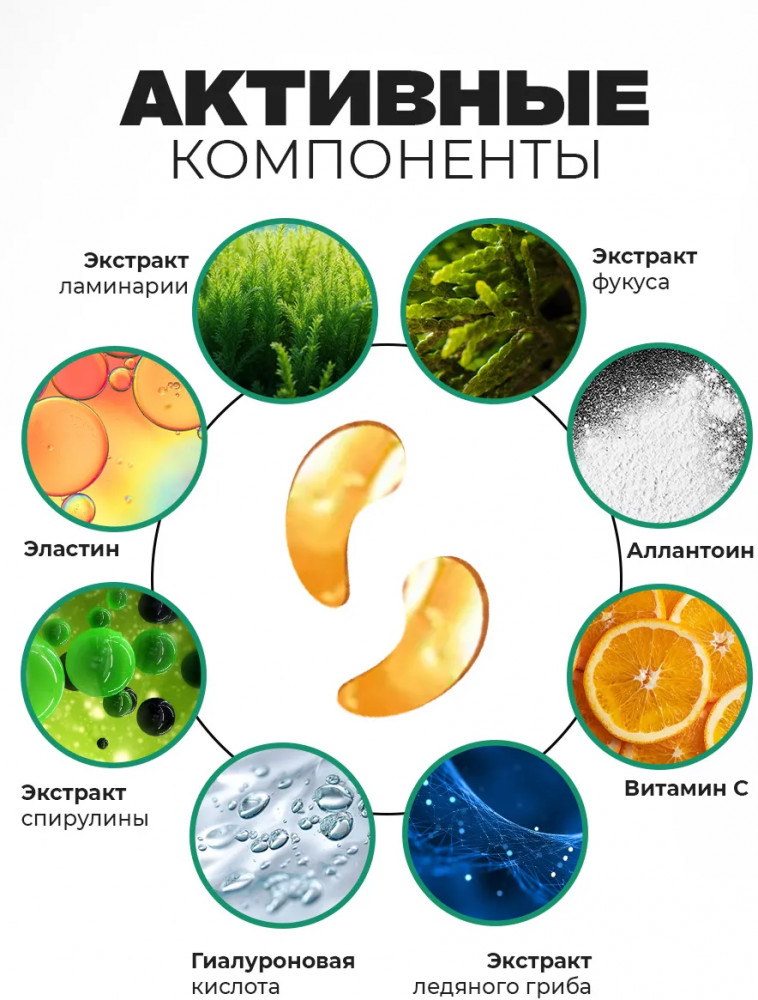 Dizao natural Набор патчей для глаз золотых гидрогелевых «Морские водоросли. Повышение упругости и энергия»