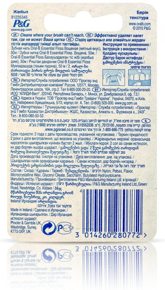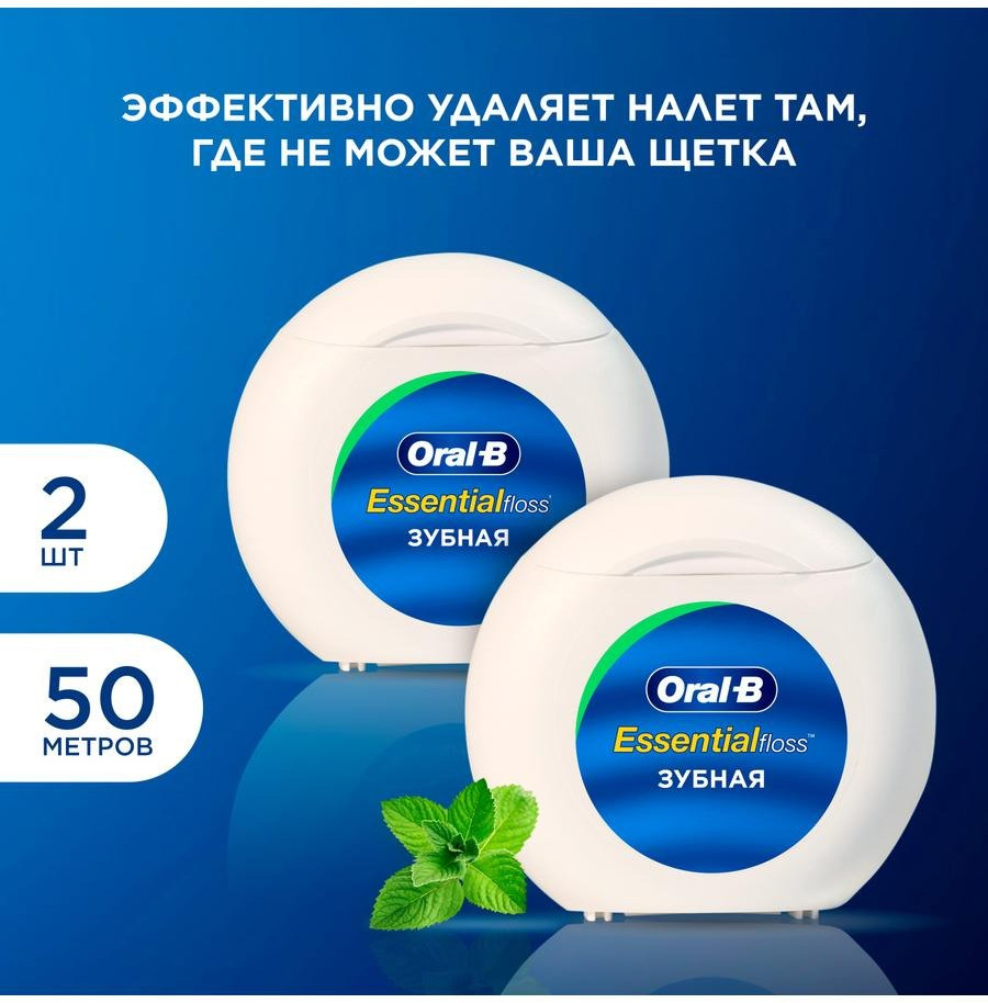 Зубная нить Орал-Би очищает там, где не может Ваша зубная щетка. Зубная нитка не ломается и не расслаивается при использовании и легко проникает в межзубные пространства. Длина нити — 50 метров. В комплекте 2 упаковки. Любые, даже мельчайшие кусочки пищи, оставшиеся во рту, могут вызвать появление и размножение болезнетворных микробов, способствующих разрушению зубной эмали. Поэтому чистка зубов должна быть особо тщательной. Oral-B бережно заботится о вашем здоровье, обеспечивая вашей улыбке сияние, а вам — прекрасное настроение на целый день.
