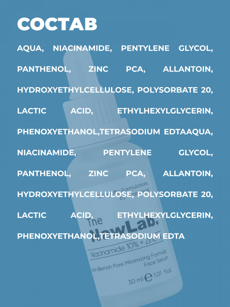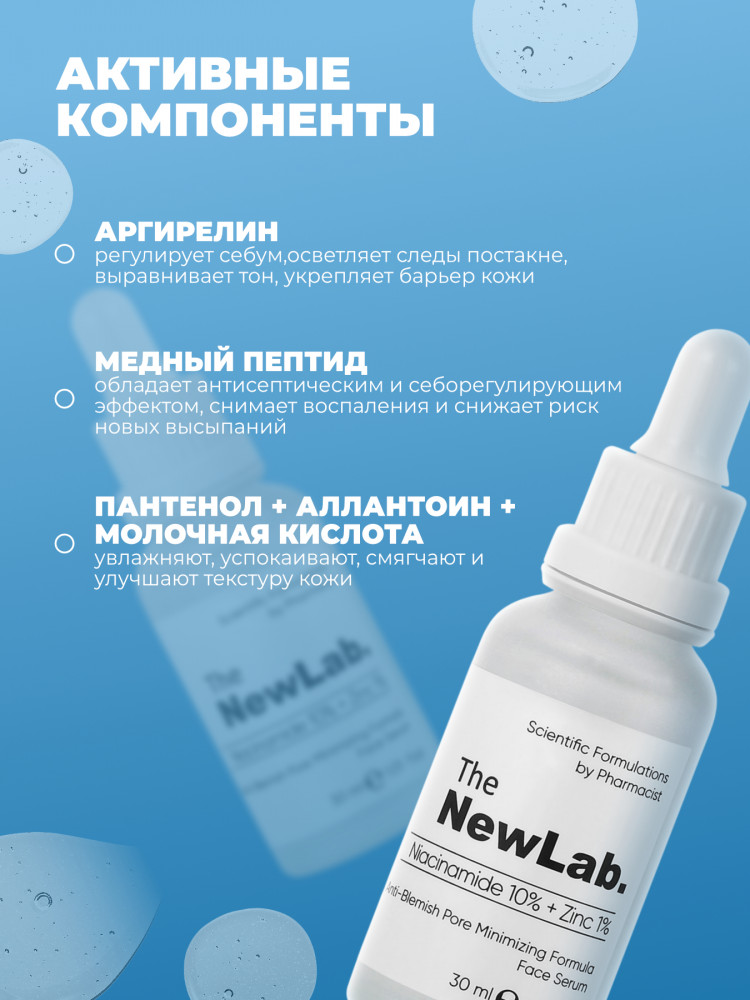 The New Lab Укрепляющая сыворотка для лица против акне, сужающая поры «Niacinamide 10% + Zinc 1%»