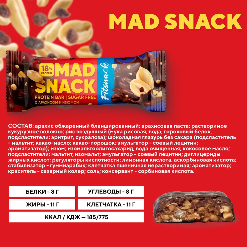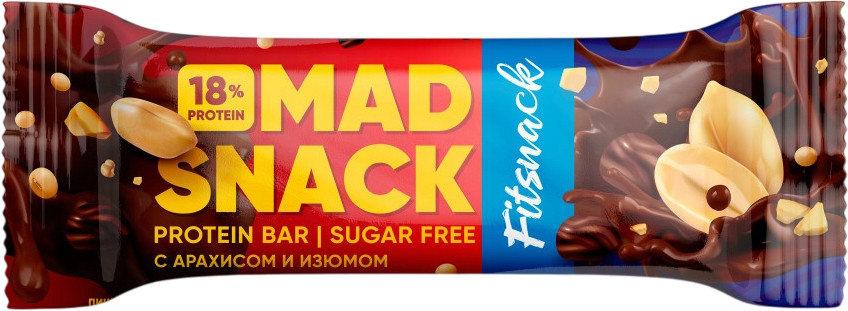 Fitsnack Батончик глазированный со вкусом арахиса и изюма «Mad Snack»