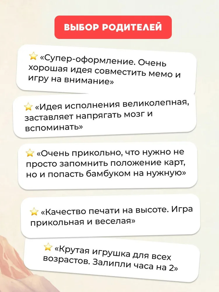 💳 Оплатить за товар можно при получении 🇰🇿 Есть бесплатная доставка по Казахстану 🎁 Копите бонусы с каждой покупки В древней бамбуковой роще, скрытой от посторонних глаз, живут девять красных панд-самураев. Они олицетворяют лучшие качества: мудрость, храбрость, честность, ловкость, благородство, терпение, преданность, достоинство и уважение. Умные и отважные хранители природы стоят на страже своих земель, защищая их от браконьеров и дровосеков, разрушителей гармонии и красоты. Когда над лесом нависает угроза, панды-самураи объединяются в братство, чтобы восстановить мир и порядок в своих владениях. Присоединяйся к важной миссии по защите природы! Развивай память, внимание и реакцию с Красными пандами! |