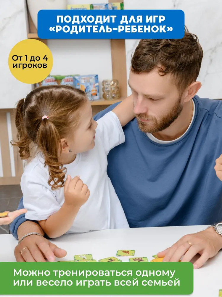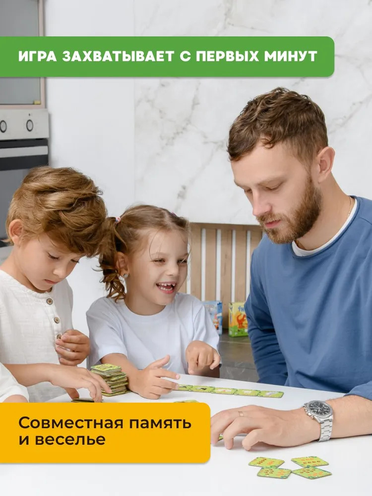 💳 Оплатить за товар можно при получении 🇰🇿 Есть бесплатная доставка по Казахстану 🎁 Копите бонусы с каждой покупки Тримо Амимо — это оригинальная вариация мемори для всей семьи. В ней нет ни одной одинаковой карточки! Зато есть 4 уровня сложности — каждый участник сможет подобрать для себя подходящий. Вотличие от классической мемори, вТримо Амимо нет одинаковых карточек. Для малышей подойдет самый простой уровень — они могут открывать сразу 6 карточек. Детям пяти-шести лет можно открывать по 5 карт, а игрокам постарше — по 4. Поэтому эта настольная игра будет интересна всей семье: и детям, и родителям, и бабушкам, и дедушкам. Семейная настольная игра подходит для детей от 3 лет и рассчитана на 2-4 игроков. Среднее время партии 20 минут. |