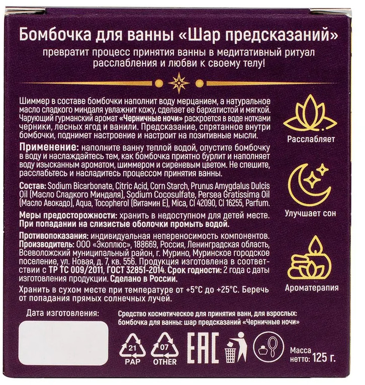 | Расслабьтесь с бомбочкой или солью для ванны, которые медленно растворяются, придавая ей мерцающий аромат и цвет. Уникальное сочетание ароматов и мерцания создает ощущение комфорта и расслабления. А натуральный состав будет ухаживать за вашей кожей. |