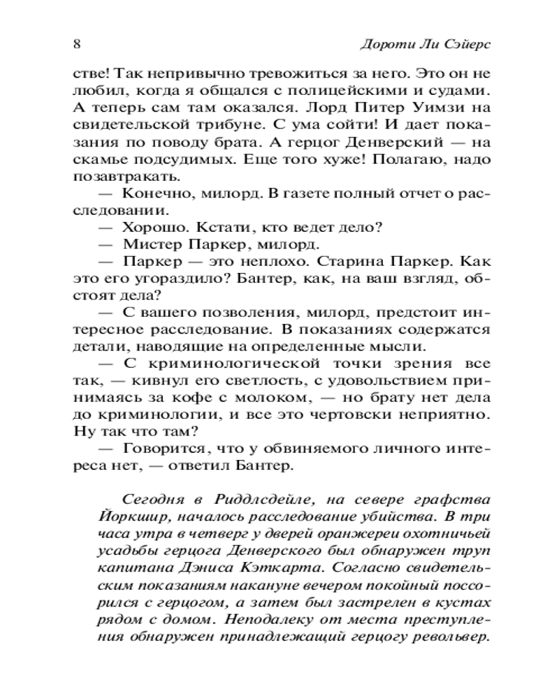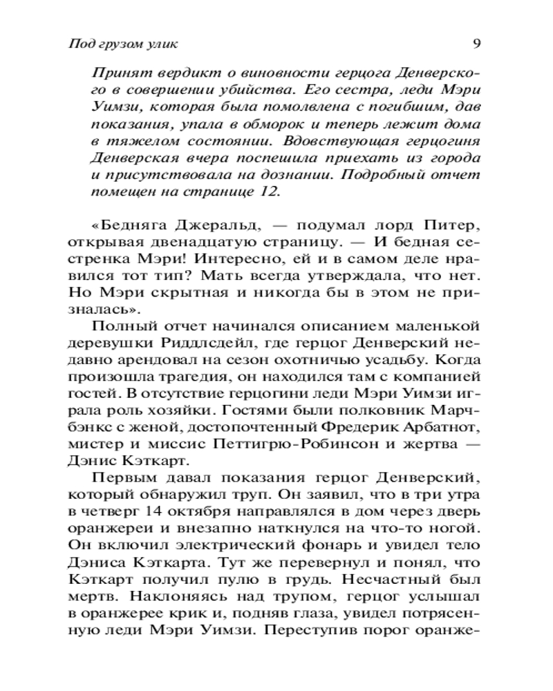💳 Оплатить за товар можно при получении 🇰🇿 Есть бесплатная доставка по Казахстану от 1 дня 🎁 Копите бонусы с каждой покупки Серия: Эксклюзивная классика Неподалеку от охотничьего домика старшего брата Питера Уимзи, герцога Денверского, найден застреленным капитан Дэнис Кэткарт. Рядом обнаружено орудие убийства — принадлежащий герцогу револьвер. В довершение всего накануне капитан и герцог серьезно поссорились. Против герцога — все: от свидетельских показаний до веского мотива и улик. Но Питер Уимзи, верящий в невиновность брата, намерен найти настоящего убийцу... |