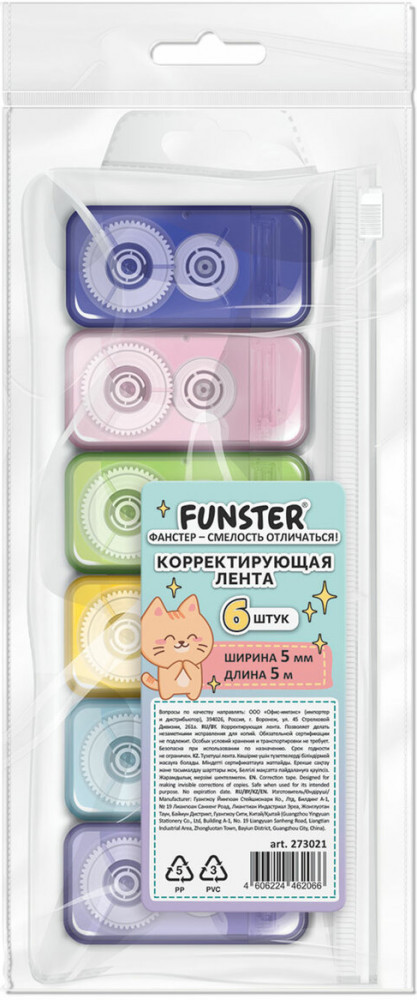 💳 Оплатить за товар можно при получении 🇰🇿 Есть бесплатная доставка по Казахстану от 1 дня 🎁 Копите бонусы с каждой покупки Корректирующая лента Funster — это незаменимый помощник для мгновенного исправления рукописных и печатных текстов. Набор из 6 штук в ПВХ-пенале в трендовых пастельных дизайнах — идеальный выбор для дома, офиса или учебы. Корректирующая лента Funster позволяет быстро и аккуратно вносить правки в тексты, документы и копии. Не требует времени на высыхание, что делает её особенно удобной в использовании. Лента не оставляет следов и черных полос на документе при копировании или отправке по факсу, обеспечивая плотное и равномерное покрытие. |