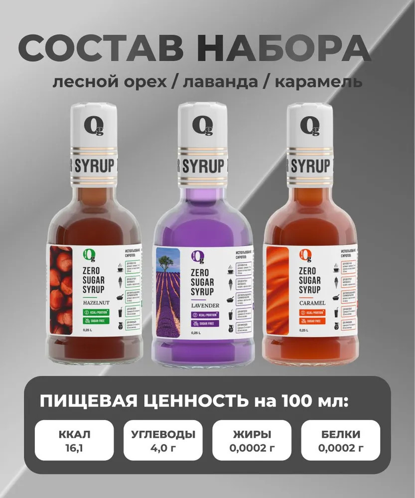 Ноль грамм Набор сиропов низкокалорийных «Карамель, лесной орех, лаванда»