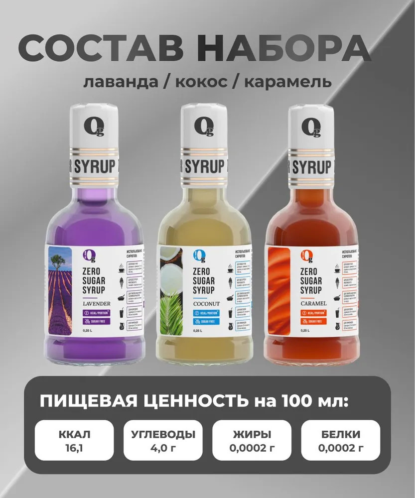 Ноль грамм Набор сиропов низкокалорийных «Карамель, кокос, лаванда»