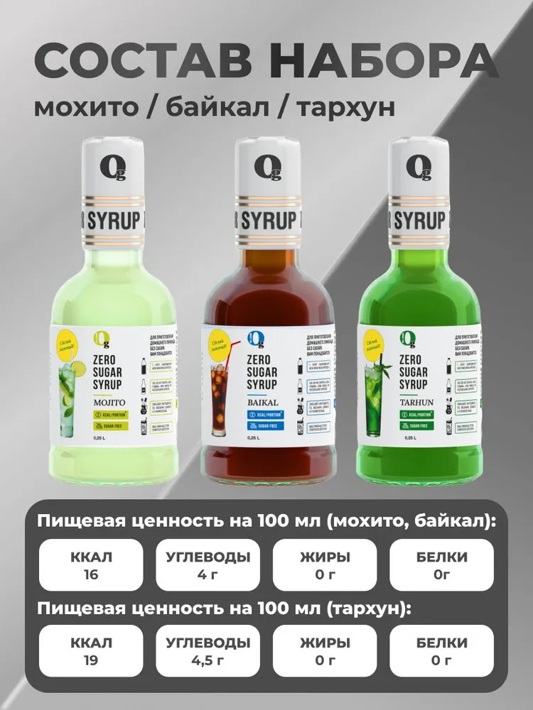 Отзывы «Набор сиропов низкокалорийных «Байка, мохито, тархун»»