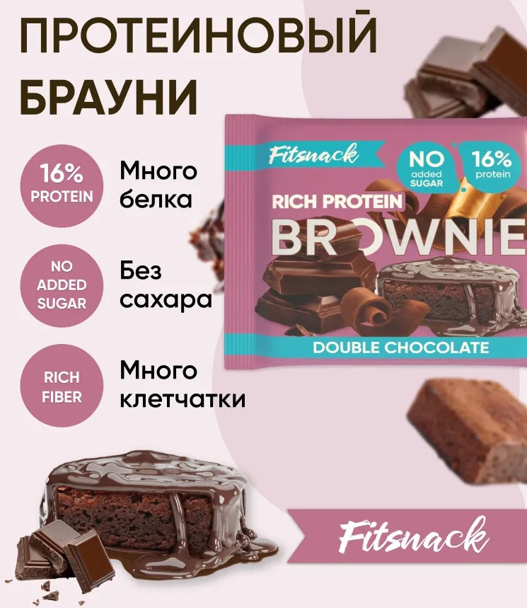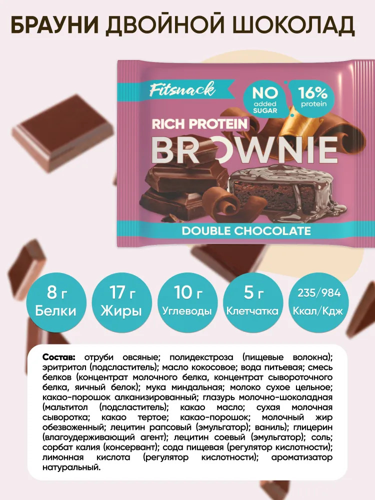 Fitsnack Пирожное-брауни протеиновое со вкусом двойного шоколада «Double chocolate»