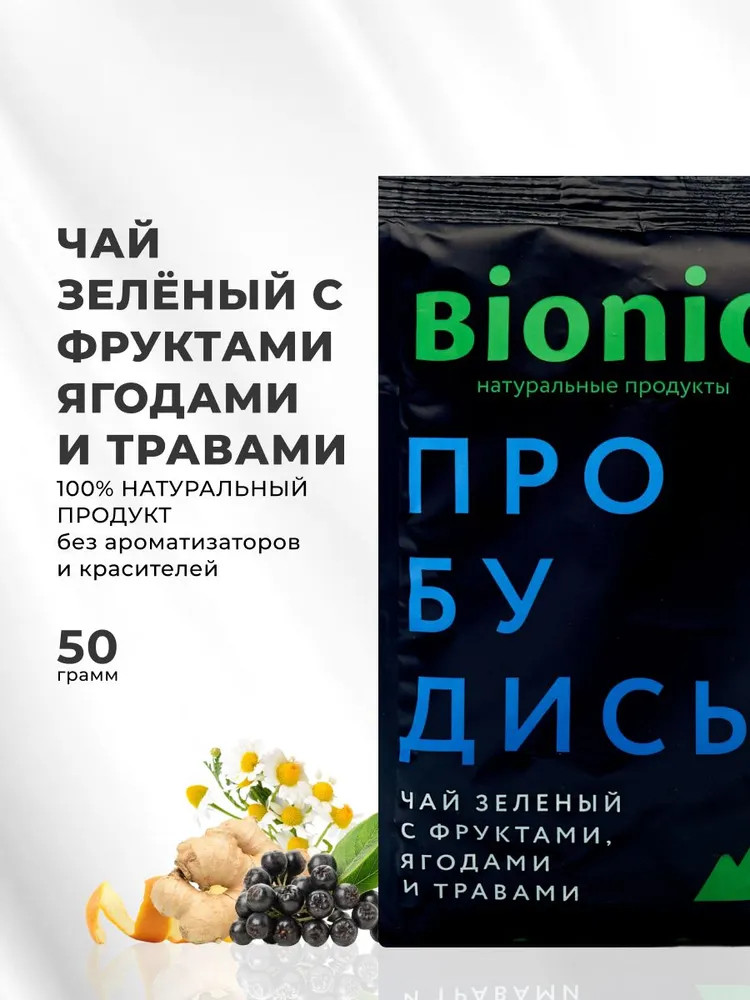 BioniQ Чай зеленый с фруктами, ягодами и травами «Пробудись»