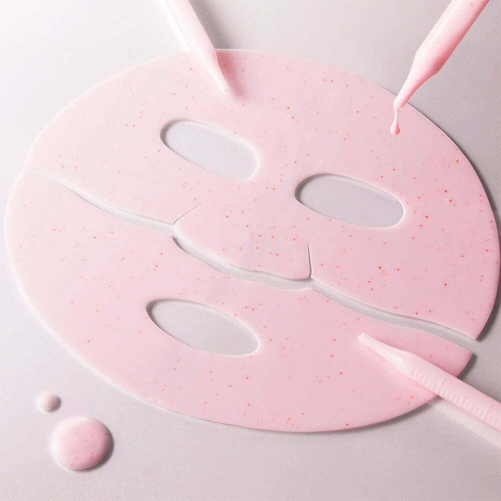 Во время использования мелкие видимые розовые капсулы пептидов постепенно растворяются и проникают глубоко в кожу, придавая ей упругость, сияние и видимый лифтинг-эффект. Гидрогелевая основа толщиной приблизительно 1 мм плотно прилегает к лицу, плавно тает при контакте с теплом кожи и становится прозрачной через 30-40 минут, что свидетельствует об активном проникновении эссенции.