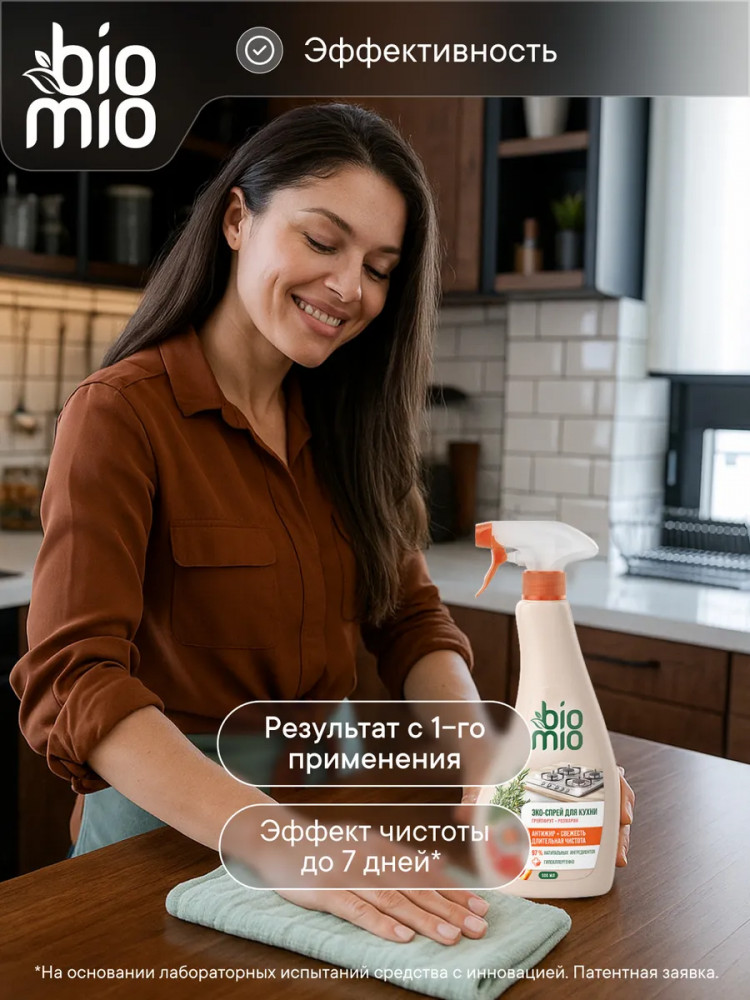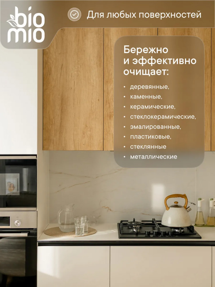Средство обладает антижировым эффектом, что делает его незаменимым помощником на кухне. Оно эффективно удаляет загрязнения со сковородок, стенок духовки и поверхности плиты, не оставляя разводов. Средство действует быстро и мягко, обеспечивая идеальную чистоту без лишних усилий. Чистящее средство для кухни БиоМио подходит как для регулярной уборки поверхностей, так и для борьбы с сильными загрязнениями на кухне. Моющая формула легко устраняет следы жира даже в сложных местах.