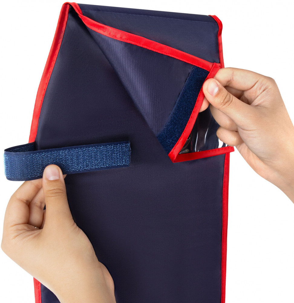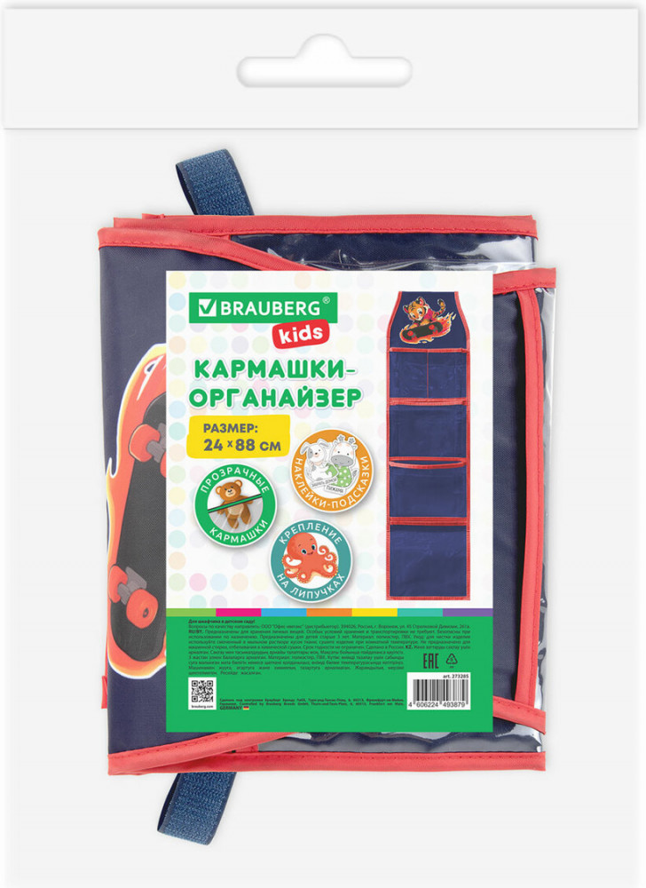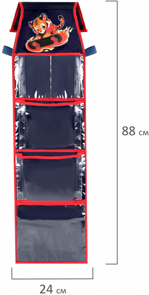 На верхней части органайзера расположен прозрачный ПВХ-кармашек для именной карточки или фото ребенка. Кармашки-органайзер упакованы в плотный ПЭТ-пакет, который сохранит качество и товарный вид при хранении и транспортировке.
