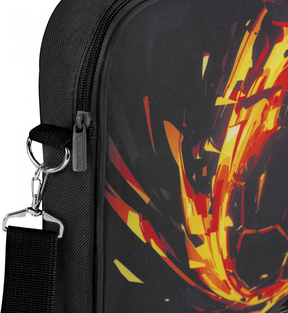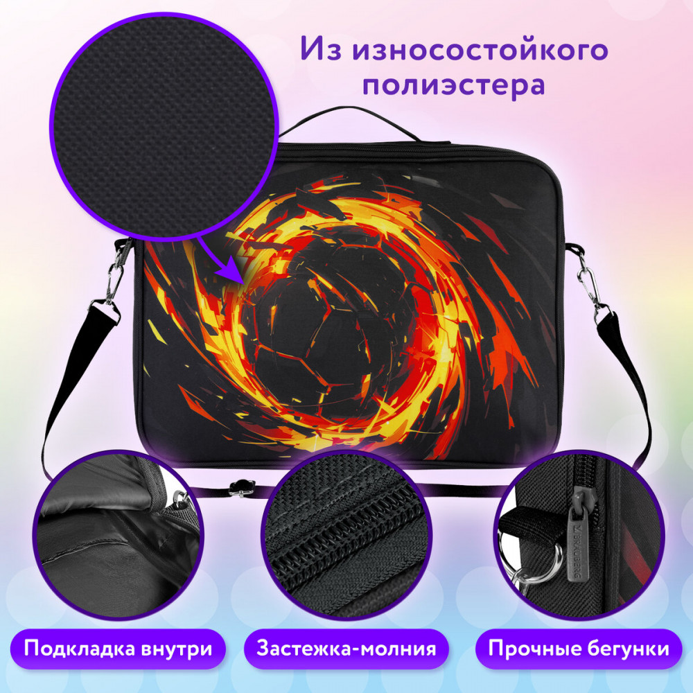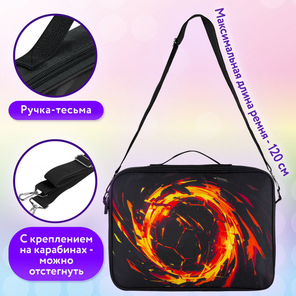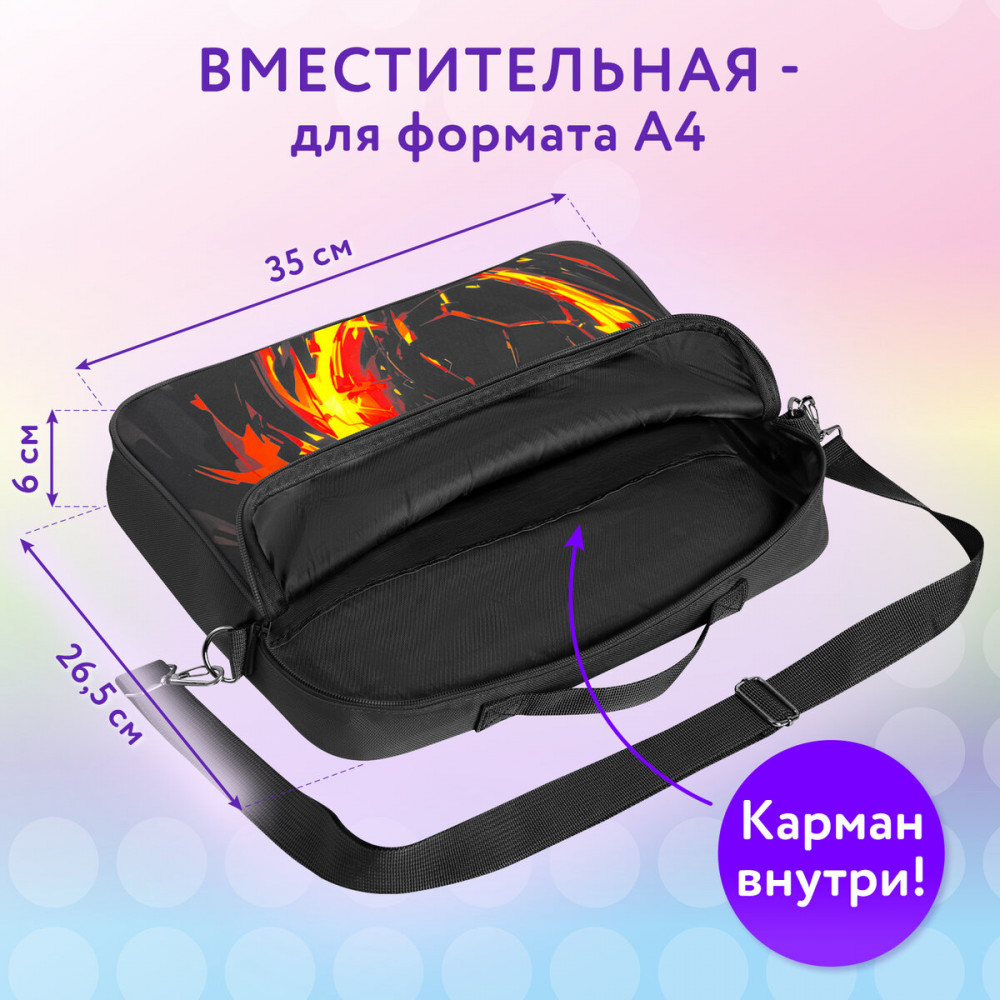 Папка держит форму за счет плотной окантовки по краям. Швы изнутри дополнительно обработаны тесьмой, что повышает ее износостойкость и прочность. Внутри папки есть карман, который удобно использовать для письменных принадлежностей и других канцтоваров. Также папка оснащена регулируемым по длине плечевым ремнем. Упакована в плотный ПЭТ-пакет, который сохранит качество и товарный вид при хранении и транспортировке.