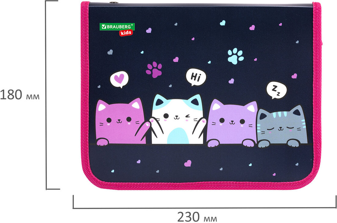 Папка на молнии Brauberg Kids формата А5 предназначена для транспортировки и хранения канцелярских принадлежностей и учебных пособий формата А5. Она защитит содержимое от смятия и повреждений. Идеально подходит для внешкольных занятий.