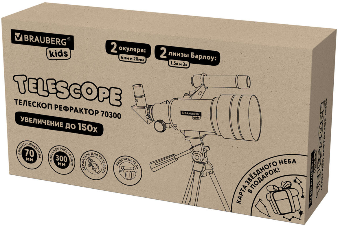 Телескоп Brauberg Kids — отличный выбор для начинающих и профессиональных исследователей. Не откладывайте открытия! Изучайте Вселенную вместе с телескопом Brauberg Kids!