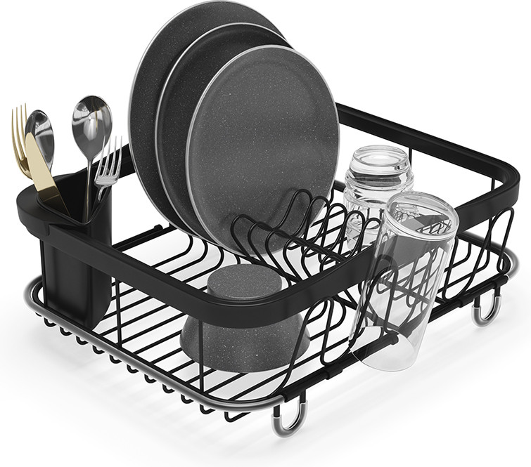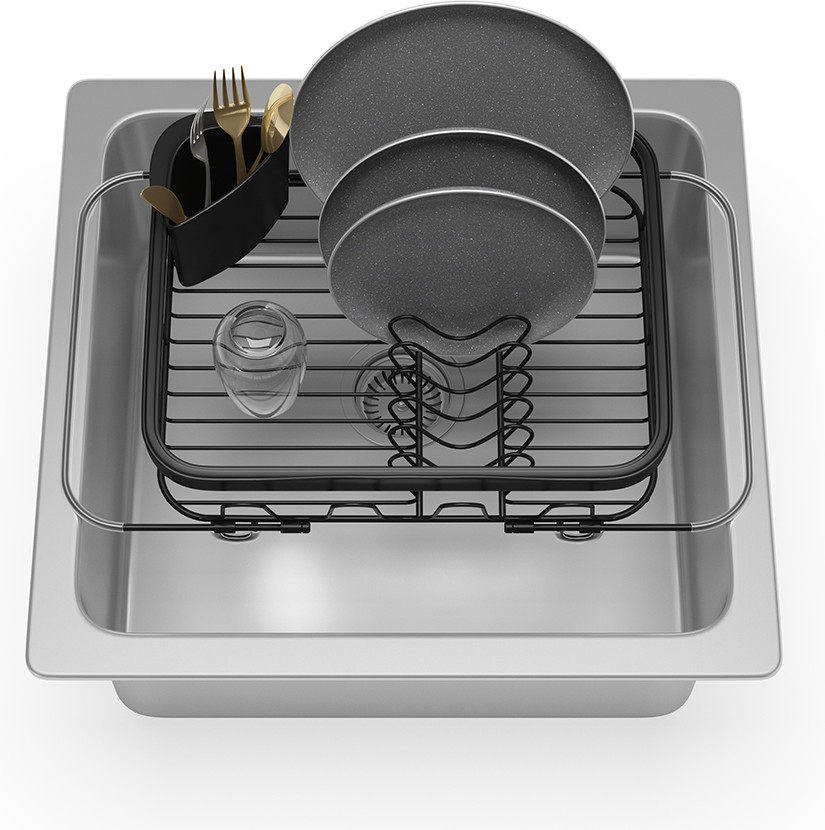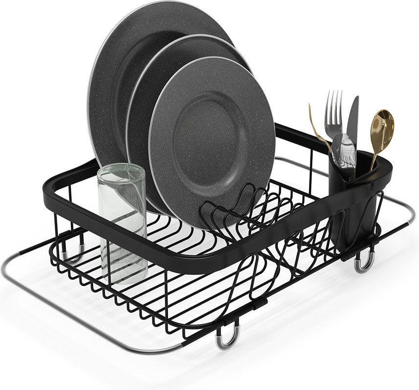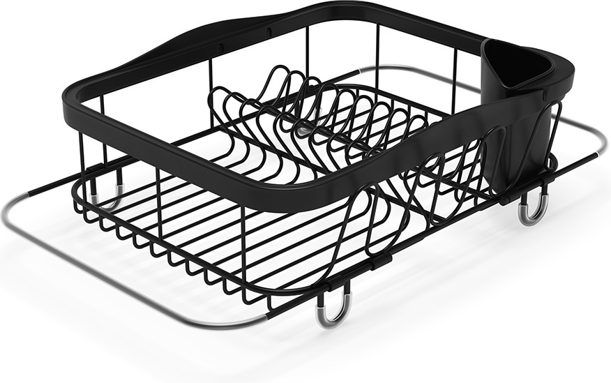 Сушилка для посуды позволит навести порядок возре раковины. Раздвигающиеся ручки добавлены для удобного хранения над раковиной (если там размораживаются продукты, например). С боковой стороны добавлены 4 удобных выступа для сушки стаканов или чашек. В комплект входит съемный уголок для хранения столовых приборов. Ручки раздвигаются до 48.5 см.