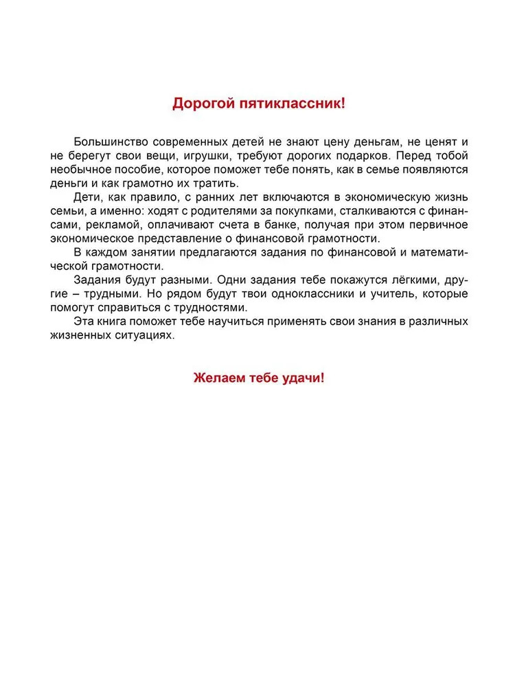 💳 Оплатить за товар можно при получении 🇰🇿 Есть бесплатная доставка по Казахстану от 1 дня 🎁 Копите бонусы с каждой покупки Серия: Учение с увлечением Функциональная грамотность 5 класс. Тренажёр для школьников. Часть 2. Тренажёр содержит задания по математической и финансовой грамотности. Содержание заданий данного тренажёра направлено на формирование у школьников потребности применять математику в повседневных ситуациях: находить математические объекты, сравнивать и классифицировать их, а также устанавливать между различными объектами математические отношения и зависимости. Выполняя задания по финансовой грамотности, учащиеся решают реальные задачи: планирование покупок, сравнение предполагаемых и реальных расходов для себя или для семьи, составление бюджета семьи или личного бюджета, работа с понятиями «потребительская корзина», «инфляция», «прожиточный минимум», «распродажи», «процент по кредиту» и много другое. К данному тренажеру выпущено методическое пособие для педагогов. Тренажёр полностью соответствует обновлённому ФГОС ООО и предназначен ученикам 5 класса и их родителям, а также педагогам, занимающимся организацией внеурочной деятельности в пятых классах. |