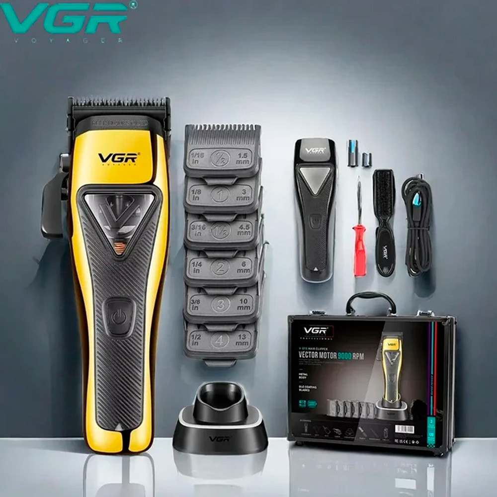 Зарядная станция для удобства и стиля: VGR 015 поставляется со стильной зарядной станцией, которая позволяет машинке для стрижки всегда быть полностью заряженной и готовой к использованию. Этот удобный аксессуар не только заряжает устройство, но и служит элегантным решением для хранения, поддерживая порядок на рабочем месте. Запасной корпус для дополнительной прочности: осознавая важность долговечности, VGR 015 комплектуется запасным корпусом. В случае случайного повреждения оригинального корпуса вы можете легко заменить его на запасной, гарантируя безупречную работу вашей машинки для стрижки и сводя к минимуму необходимость дорогостоящего ремонта или замены.