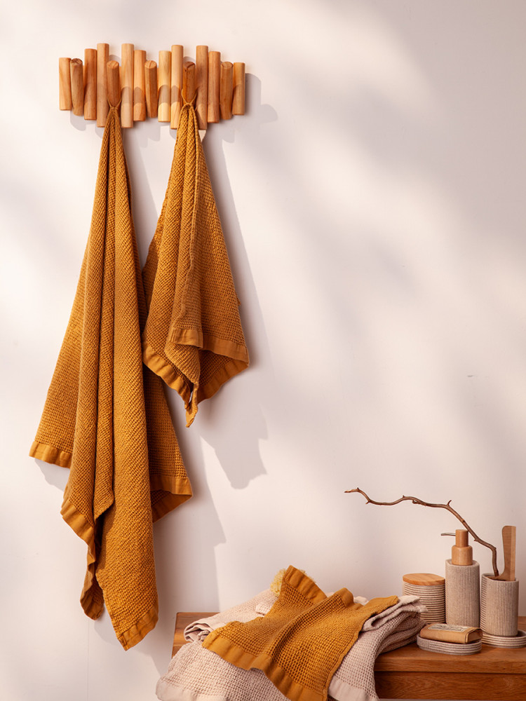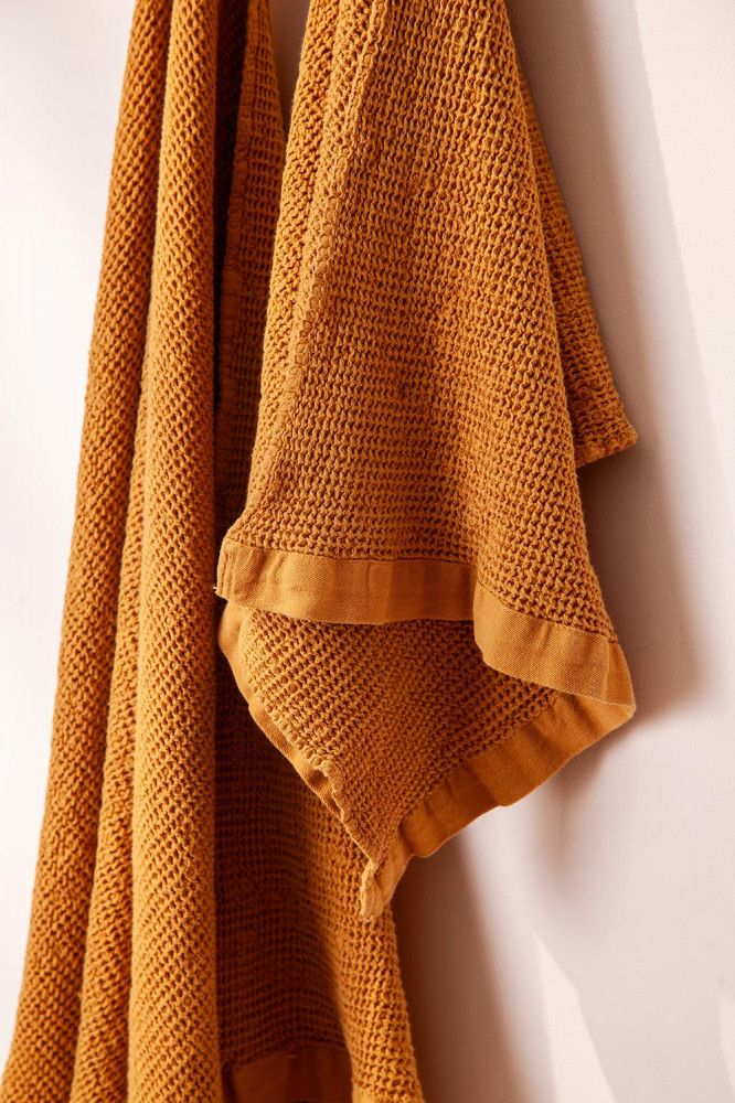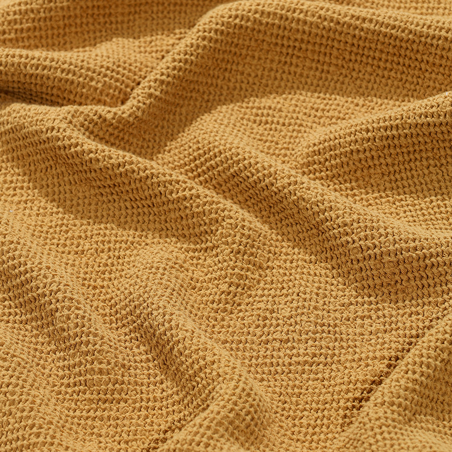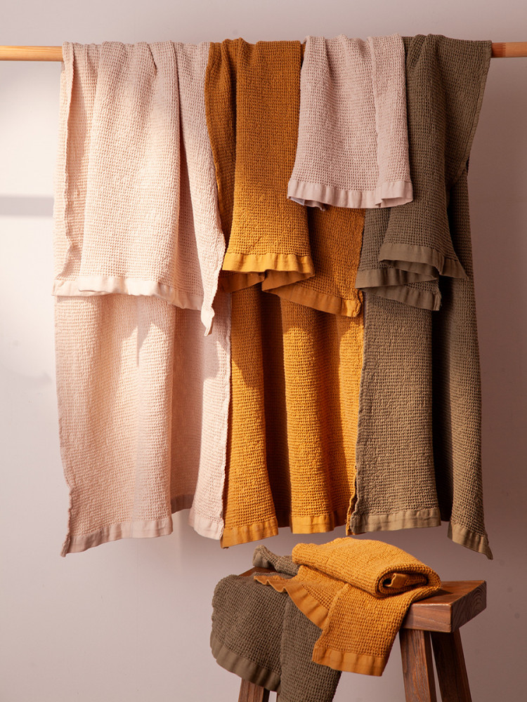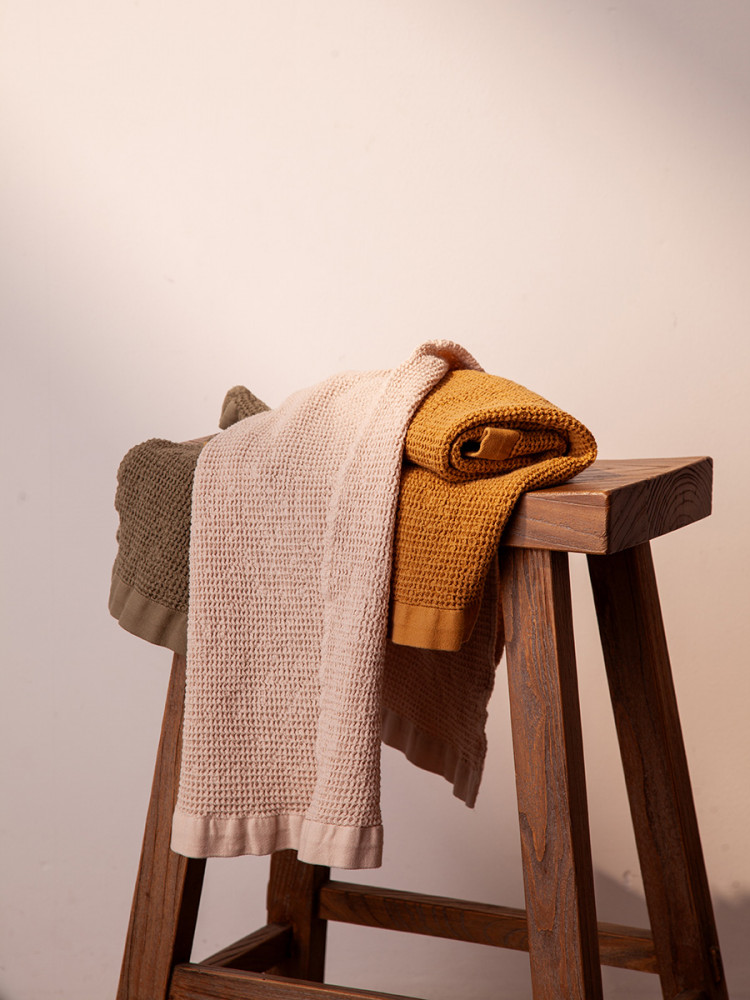 • благодаря вафельному плетению материал хорошо пропускает воздух, быстро сохнет и отличается легкостью;
