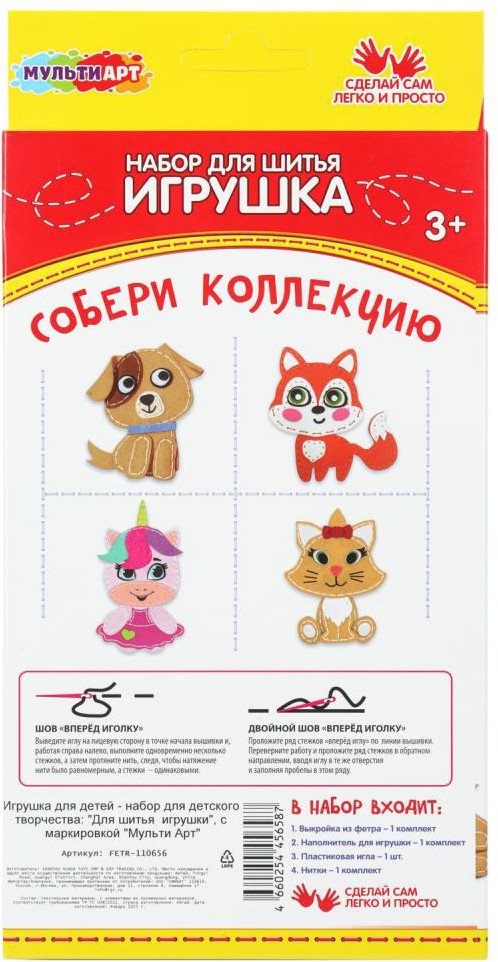 💳 Оплатить за товар можно при получении 🇰🇿 Есть бесплатная доставка по Казахстану от 1 дня 🎁 Копите бонусы с каждой покупки Набор для шитья — игрушка из фетра «Милый щенок» ТМ «Мульти Арт» — отличный подарок для ребёнка, который будет способствовать развитию её творческих способностей. Такой набор непременно понравится маленьким рукодельникам: с его помощью можно создать интересную вещь собственными руками и получить массу приятных эмоций в процессе работы с ним. В комплект входит всё необходимое, чтобы сразу приступить к созданию игрушки. В целях безопасности игла из набора изготовлена из пластика и специально затуплена. При этом на выкройках имеются крупные отверстия, в которые инструмент без труда входит. Подробная инструкция, в свою очередь, поможет не запутаться в последовательности действий. Готовую поделку можно подарить родным или друзьям, а также использовать в своих играх: брать её с собой спать, на прогулку или в путешествие. |