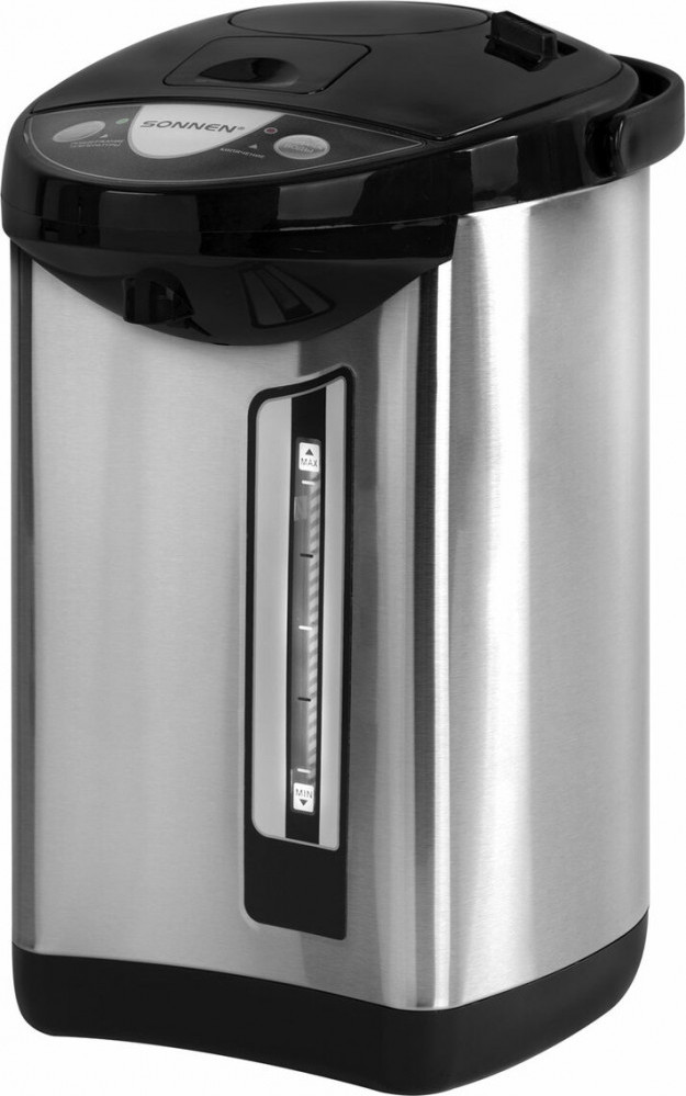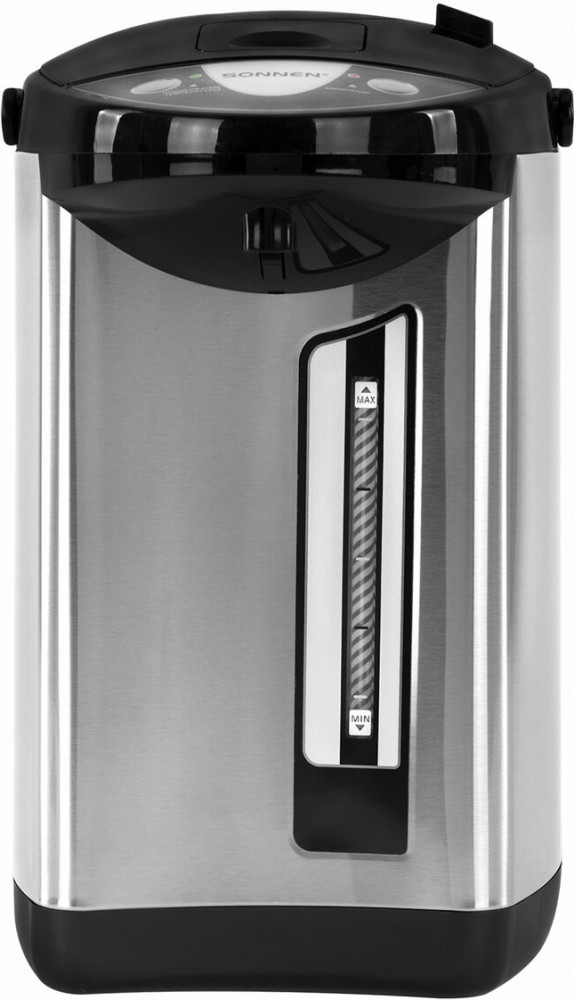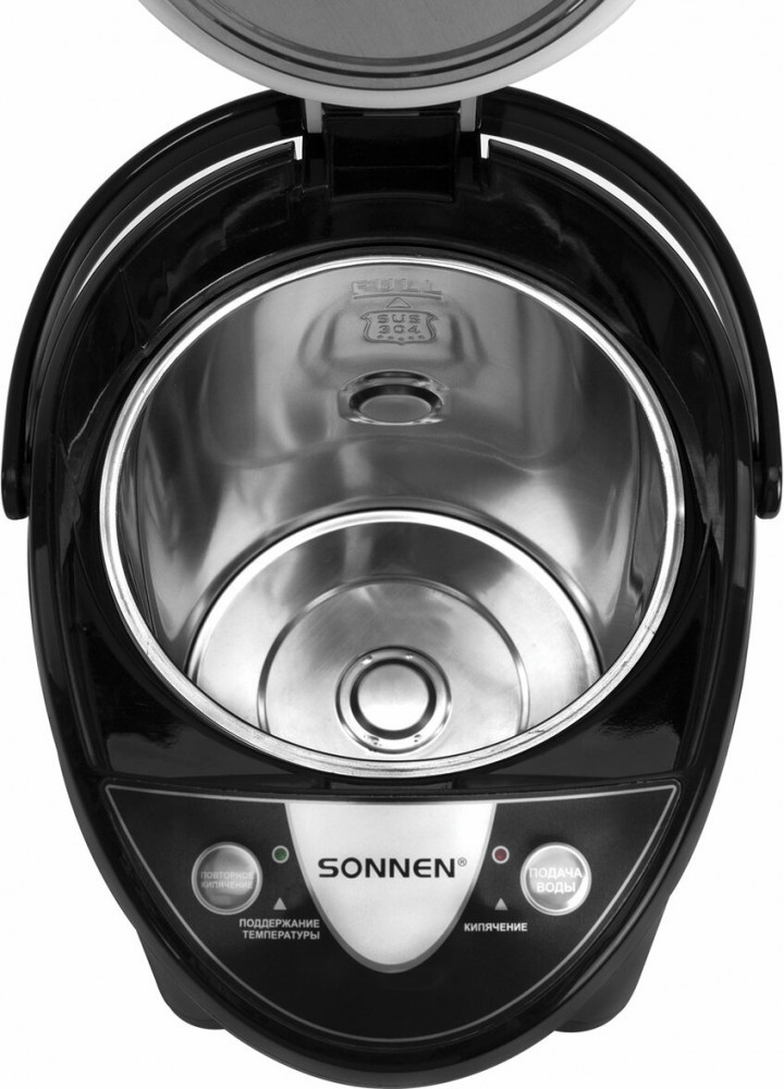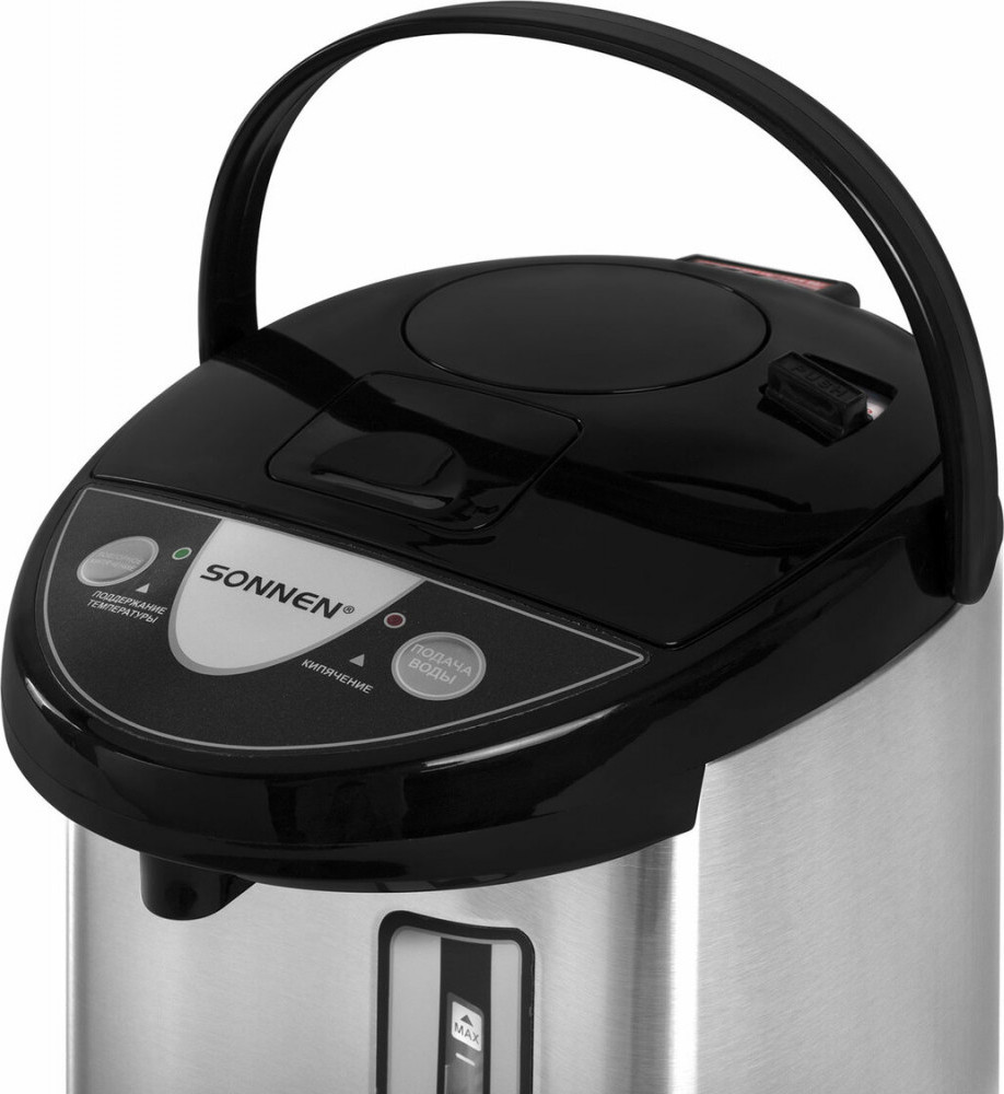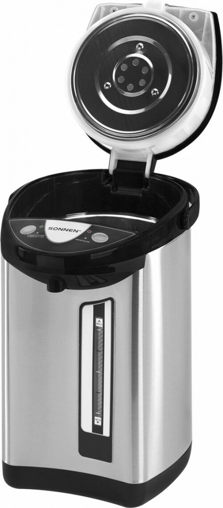 💳 Оплатить за товар можно при получении 🇰🇿 Есть бесплатная доставка по Казахстану от 1 дня 🎁 Копите бонусы с каждой покупки Термопот Sonnen TP-50 — современный и функциональный прибор, который обеспечит постоянное наличие горячей воды для приготовления чая, кофе или других напитков. Объем термопота TP-50 составляет 5 л. Благодаря мощности 900 Вт устройство быстро нагревает воду до 100°C, что делает его оптимальным решением для большой семьи или офиса. Воду можно наливать тремя способами: электронасосом, ручной помпой и нажимом кружкой. На верхней части расположена панель управления, с помощью которой можно налить или повторно нагреть воду. Также на ней размещены LED-индикаторы, которые загораются, когда изделие поддерживает температуру или кипятит воду. |