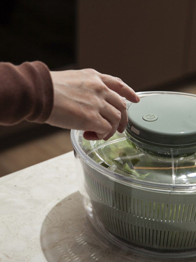 Электросушилка для салата Press&Dry поможет быстро удалить воду с зелени, ягод и овощей. Просто поместите вымытые продукты в контейнер, закройте крышку и нажмите на кнопку «пуск». Всего за несколько секунд вы получите сухие ингредиенты для приготовления ваших любимых блюд.