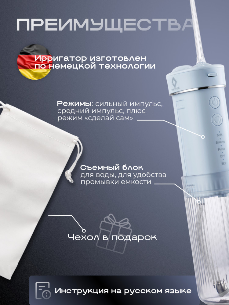 | Бренд современных решений для гигиены полости рта. Специализируется на производстве эффективных и удобных ирригаторов, разработанных с учётом потребностей пользователей. Продукция Neovinch сочетает в себе инновационные технологии, эргономичный дизайн и высокую надёжность. Ирригаторы Neovinch обеспечивают глубокую очистку межзубных пространств, эффективно удаляют остатки пищи и налёт, помогают в профилактике кариеса, гингивита и пародонтоза. Бренд предлагает модели как для домашнего... |