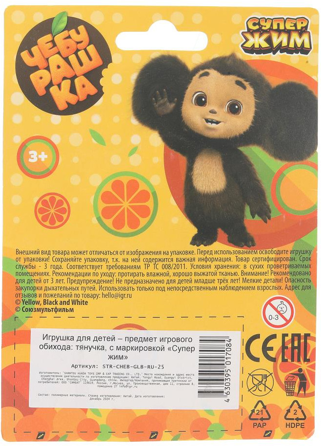 💳 Оплатить за товар можно при получении 🇰🇿 Есть бесплатная доставка по Казахстану от 1 дня 🎁 Копите бонусы с каждой покупки Игрушка-тянучка «Чебурашка» ТМ «СуперЖим» станет прекрасным подарком для маленьких поклонников фильма про милого ушастика. Эта забавная игрушка в виде очаровательного Чебурашки понравится вашему непоседе, он с удовольствием будет растягивать ее в руках, наблюдая за тем как она меняет и восстанавливает свою форму. Фигурка наполнена блёстками с гелем, поэтому красиво выглядит внешне и приятна на ощупь тактильно. Кроме того, игрушка является прекрасным тренажёром для детских пальцев. Игра с тянучкой ТМ «СуперЖим» также оказывает успокаивающий антистресс-эффект и развивает: воображение, фантазию, сенсорное восприятие и мелкую моторику. |