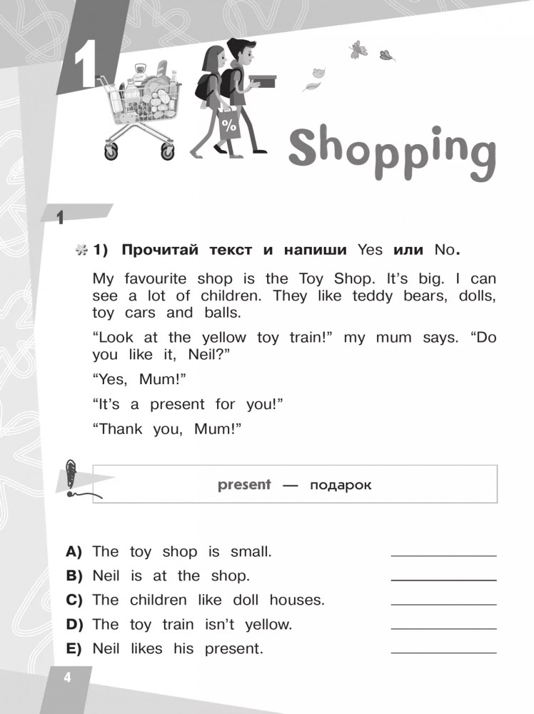 Английский язык. Тренажёр по смысловому чтению. 2 классВ данный момент этот товар отсутствует в продаже. Возможно, у нас найдется аналогичный или похожий товар здесь. Серия: Иностранный язык и Я Тренажёр по смысловому чтению направлен на развитие читательской грамотности у второклассников общеобразовательных организаций и школ с углублённым изучением английского языка. В сборнике большое внимание уделяется чтению и пониманию несплошных текстов. Школьникам предлагается небольшой текст и серия упражнений, позволяющих полностью понять прочитанное. Создание таблицы и её заполнение на основе прочитанного улучшит аналитические способности младших школьников, научит их отделять и не принимать во внимание избыточную информацию, выделять суть текста и важные детали. |