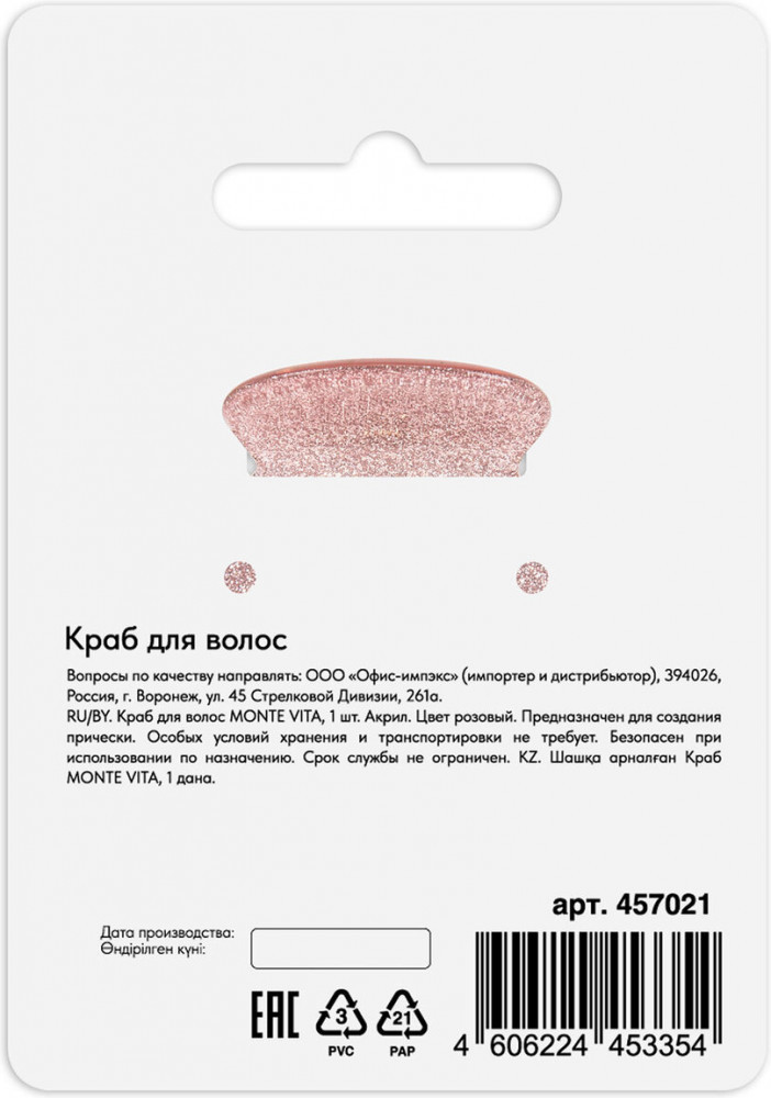 💳 Оплатить за товар можно при получении 🇰🇿 Есть бесплатная доставка по Казахстану от 1 дня 🎁 Копите бонусы с каждой покупки Краб для волос Monte Vita — это незаменимый аксессуар для создания прически: от романтичной до строгой и деловой. Удобен и прост в обращении. |