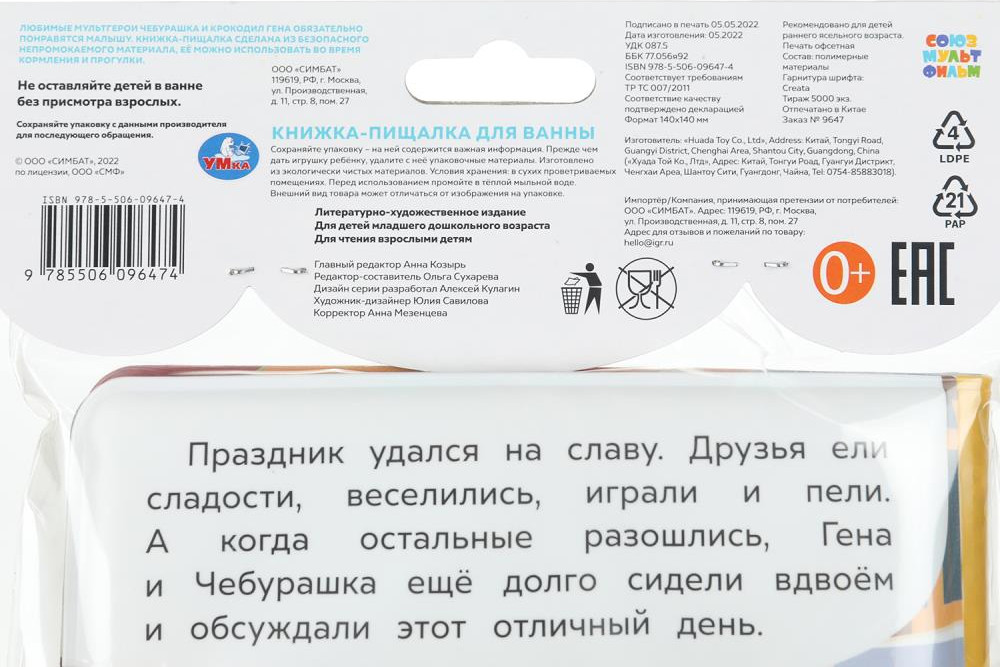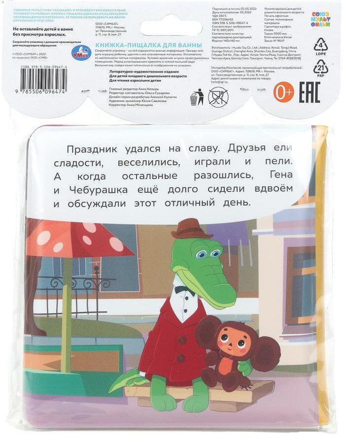 УМка Книга-пищалка для ванны «Чебурашка идёт на праздник»-35% +67