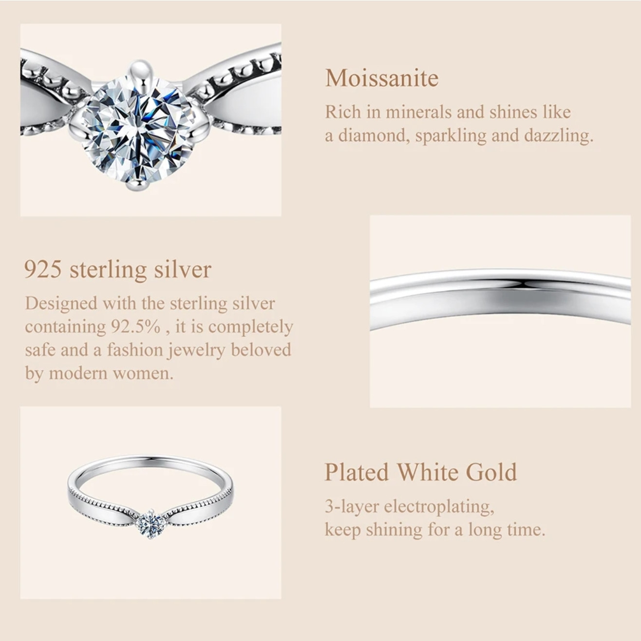 Bamoer Кольцо с муассанитом женское