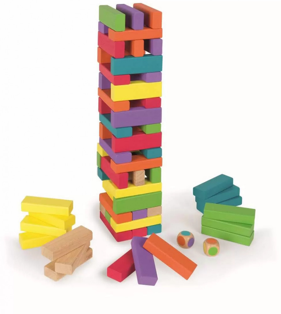 В данный момент этот товар отсутствует в продаже. Возможно, у нас найдется аналогичный или похожий товар здесь. Дженга-игра для терпеливых и внимательных! Эта яркая деревянная игра развивает ловкость, координацию и цветовое восприятие. Сначала нужно построить башню, размещая блоки рядами по три, чередуя направления и цвета — так играть ещё интереснее!