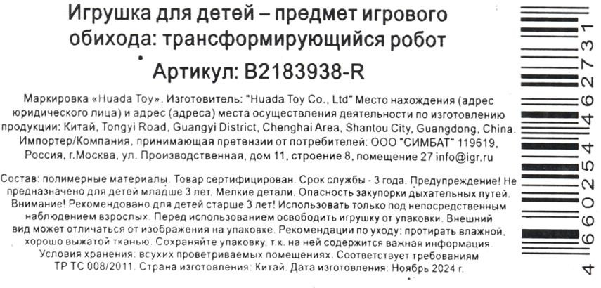 Трансформирующийся робот 2 в 1В данный момент этот товар отсутствует в продаже. Возможно, у нас найдется аналогичный или похожий товар здесь. Трансформирующийся робот 2 в 1 станет отличным подарком для ребёнка. Этот яркий робот непременно понравится юному герою. Вместе с ним можно отправиться на спецзадание, спасти мир, стоять на страже правопорядка и придумать ещё много сюжетов для занимательных игр. Ребёнок может играть с ним как с роботом, так и как с машинкой. Игра с трансформирующимся роботом развивает: фантазию, моторику, пространственно-образное мышление, логику и интеллект. |