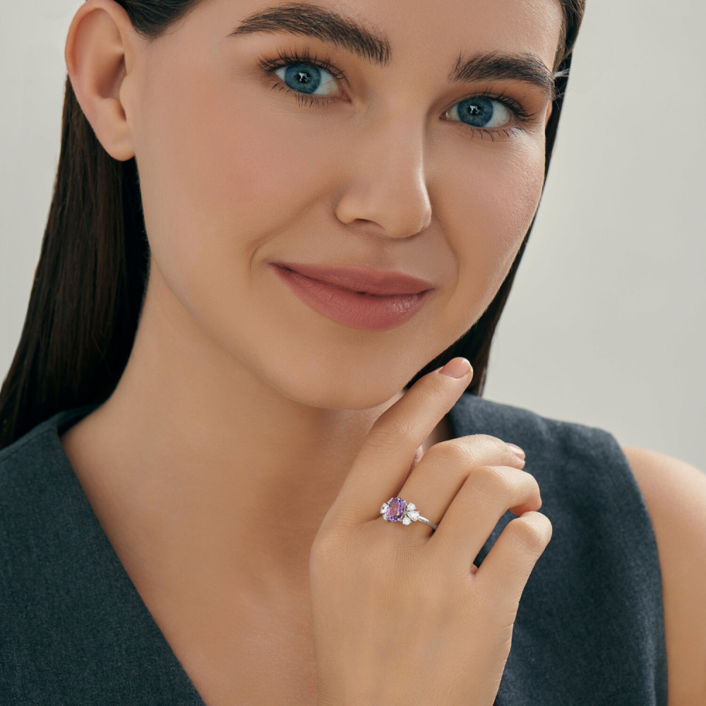 SOKOLOV Кольцо из серебра с аметистом и фианитами