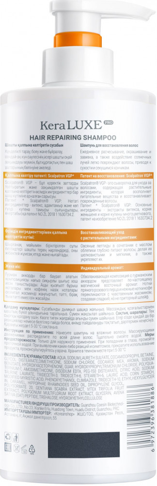 Kera Luxe Pro Шампунь для восстановления волос с комплексом Scalpatron VGP «Hair Repairing Shampoo»