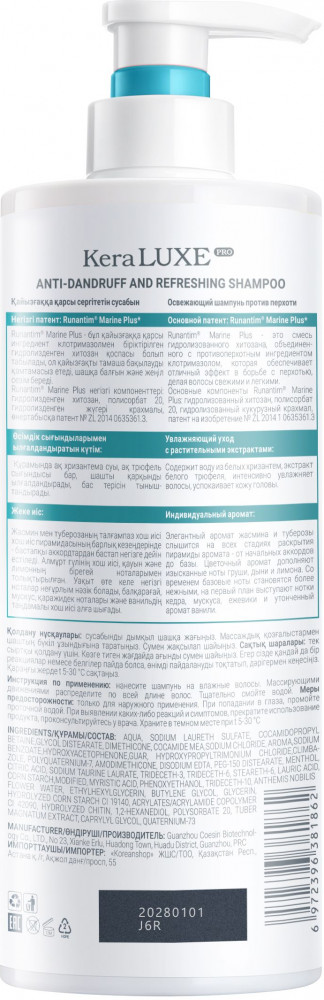 Kera Luxe Pro Шампунь против перхоти освежающий с комплексом Runantim Marine Plus «Anti-Dandruff & Refreshing Shampoo»