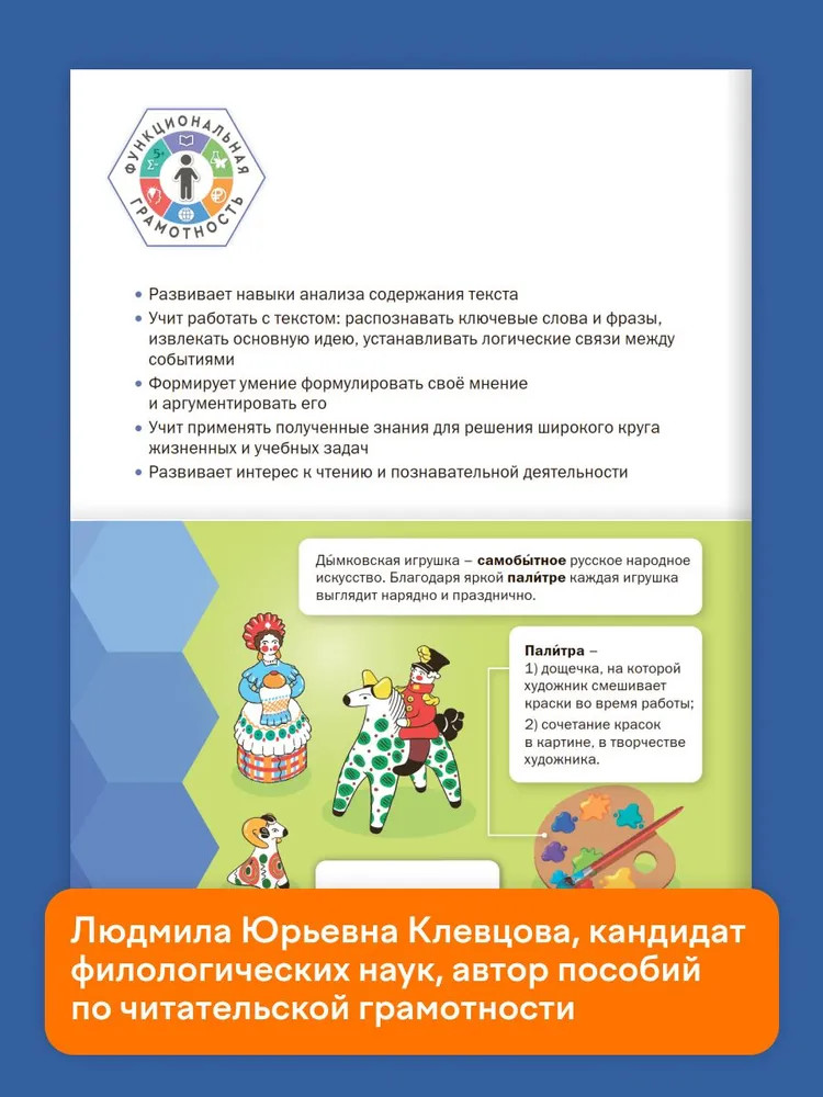 💳 Оплатить за товар можно при получении 🇰🇿 Есть бесплатная доставка по Казахстану от 1 дня 🎁 Копите бонусы с каждой покупки Серия: Функциональная грамотность. Тренажёр Пособие предназначено для развития навыков смыслового чтения у младших школьников. Оно содержит тексты народных сказок, художественные и научно-познавательные тексты, сопровождаемые системой заданий. Материалы пособия могут быть использованы для диагностики и оценки уровня владения навыками смыслового чтения как важнейшего компонента функциональной грамотности обучающихся в начальной школе. Пособие полностью соответствует действующим ФГОС и ФОП НОО. Книга рассчитана на применение на уроках русского языка и литературного чтения в индивидуальной и групповой работе учащихся, во внеурочной работе и в условиях домашней подготовки. |