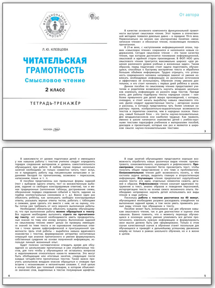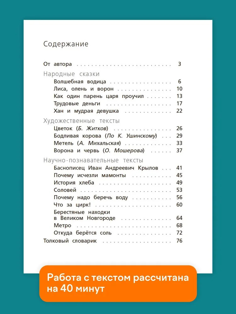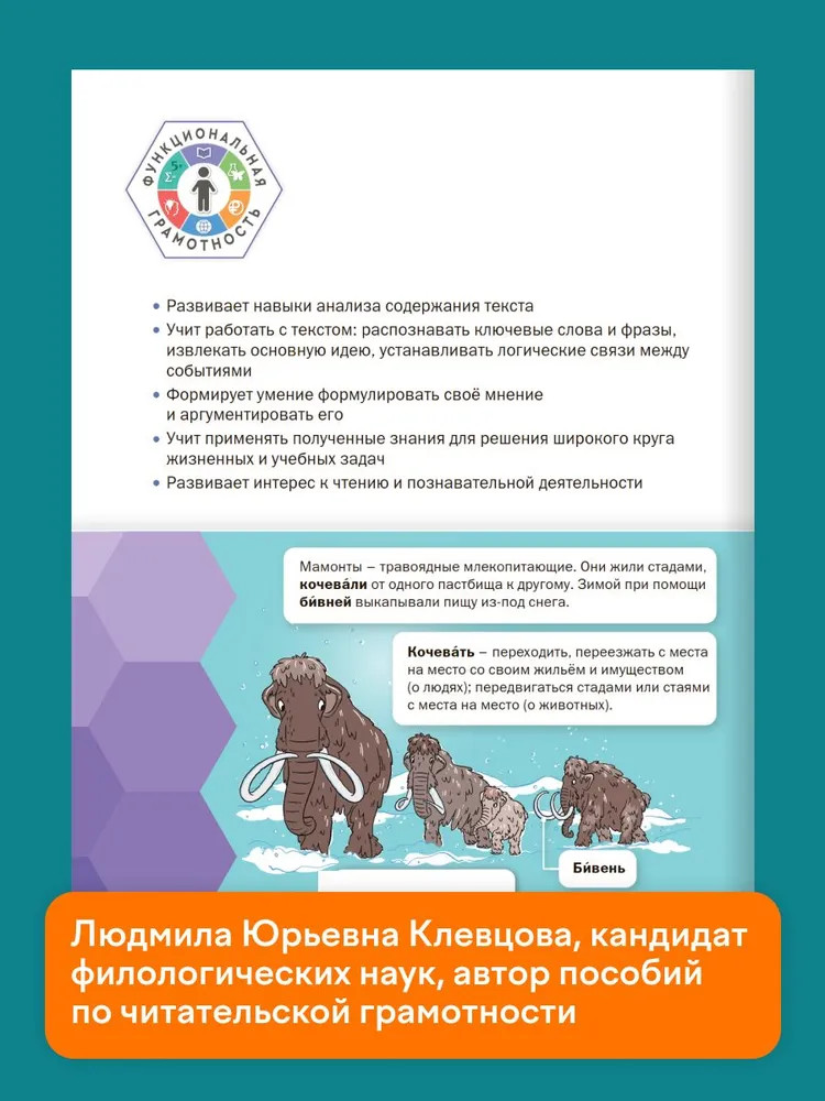 💳 Оплатить за товар можно при получении 🇰🇿 Есть бесплатная доставка по Казахстану от 1 дня 🎁 Копите бонусы с каждой покупки Серия: Функциональная грамотность. Тренажёр Пособие предназначено для развития навыков смыслового чтения у младших школьников. Оно содержит тексты народных сказок, художественные и научно-познавательные тексты, сопровождаемые системой заданий. Материалы пособия могут быть использованы для диагностики и оценки уровня владения навыками смыслового чтения как важнейшего компонента функциональной грамотности обучающихся в начальной школе. Пособие полностью соответствует действующим ФГОС и ФОП НОО. Книга рассчитана на применение на уроках русского языка и литературного чтения в индивидуальной и групповой работе учащихся, во внеурочной работе и в условиях домашней подготовки. |