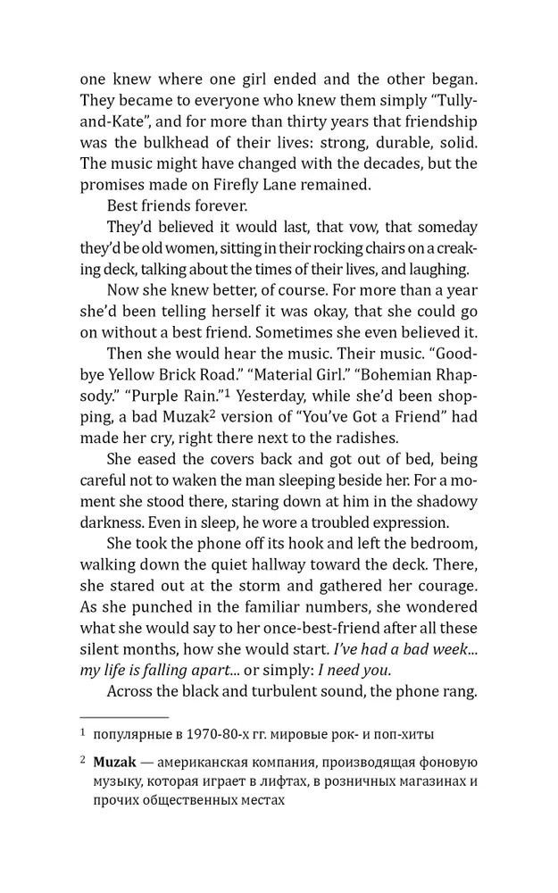💳 Оплатить за товар можно при получении 🇰🇿 Есть бесплатная доставка по Казахстану от 1 дня 🎁 Копите бонусы с каждой покупки Талли и Кейт, живущие по соседству на улице Светлячков девочки-подростки, не похожи друг на друга, как небо и земля. У них разные семьи, разные характеры и разные планы на будущее, но им удается подружиться и стать друг для друга надежной опорой в любой ситуации. Казалось, что дружбу, пронесенную через десятилетия, ничто не разрушит, но даже между близкими людьми случаются ссоры. Что окажется сильнее, когда речь пойдет о жизни и смерти, — сострадание или гордость, теплые воспоминания или взаимные обиды? |