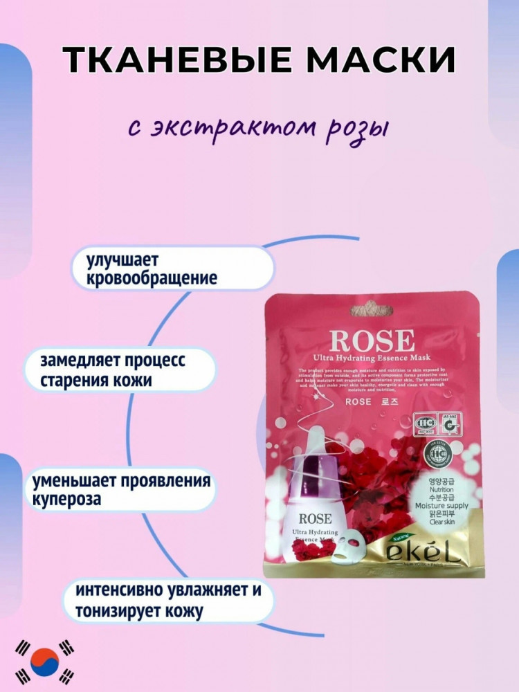 Ekel Набор масок для лица «Rose Ultra Hydrating Essence Mask»
