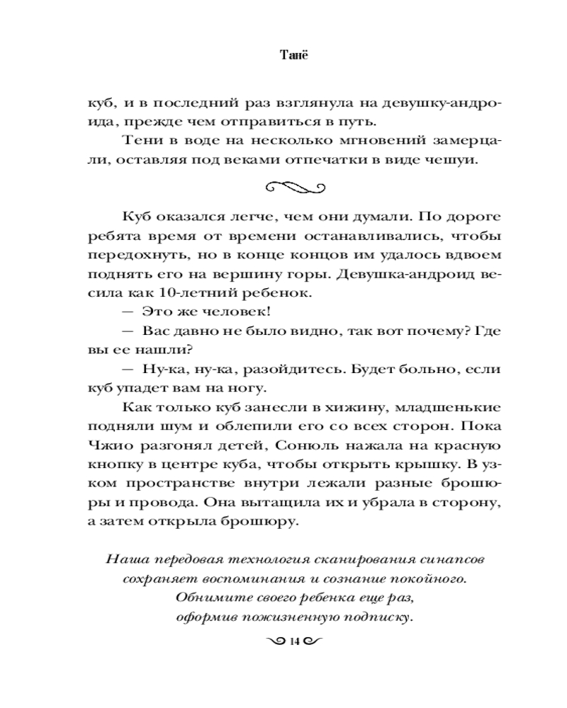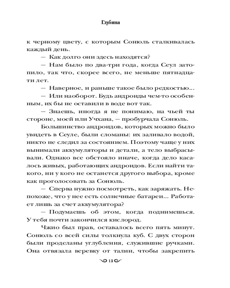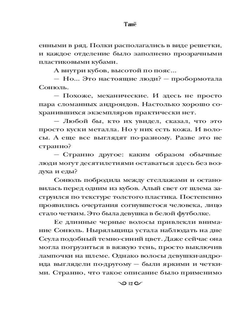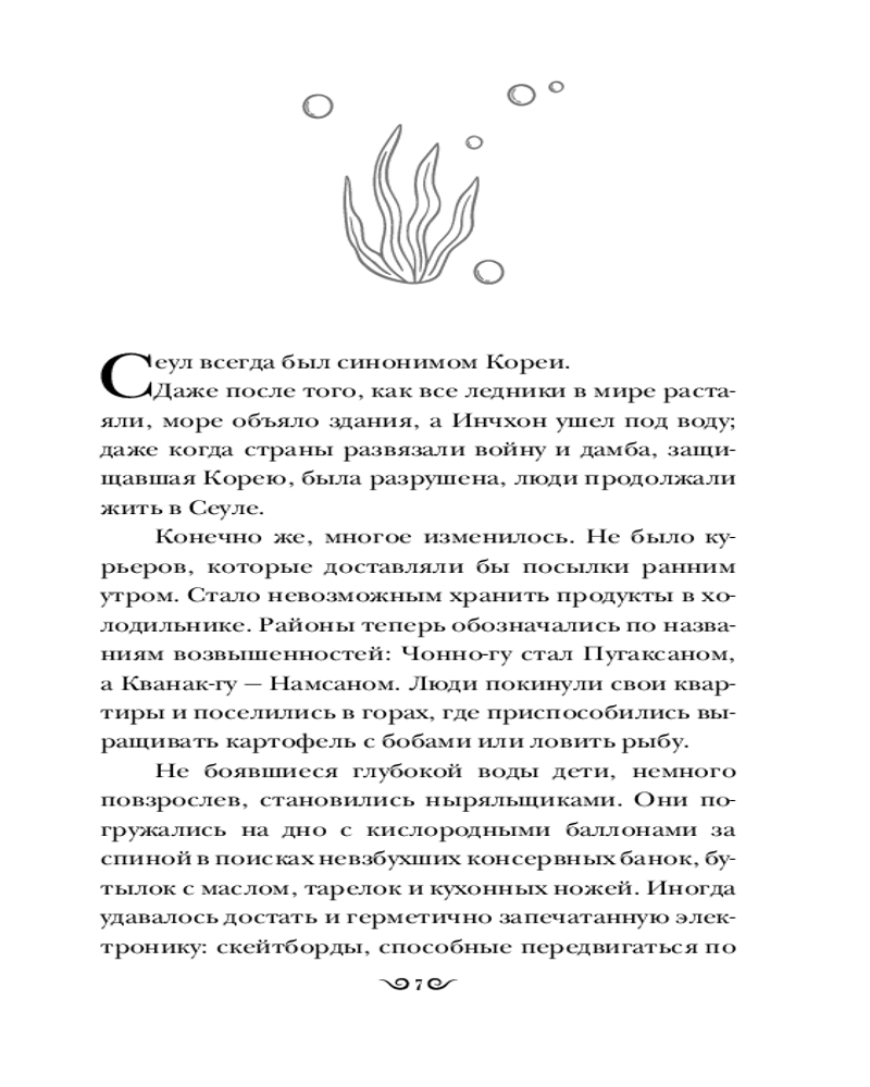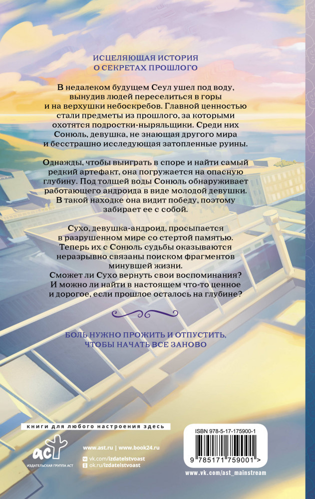 💳 Оплатить за товар можно при получении 🇰🇿 Есть бесплатная доставка по Казахстану от 1 дня 🎁 Копите бонусы с каждой покупки Серия: Хиты корейской волны В недалеком будущем Сеул ушел под воду, вынудив людей переселиться в горы и на верхушки небоскребов. Главной ценностью стали предметы из прошлого, за которыми охотятся подростки-ныряльщики. Среди них Сонюль, девушка, не знающая другого мира и бесстрашно исследующая затопленные руины. Однажды, чтобы выиграть в споре и найти самый редкий артефакт, она погружается на опасную глубину. Под толщей воды Сонюль обнаруживает работающего андроида в виде молодой девушки. В такой находке она видит победу, поэтому забирает ее с собой. |