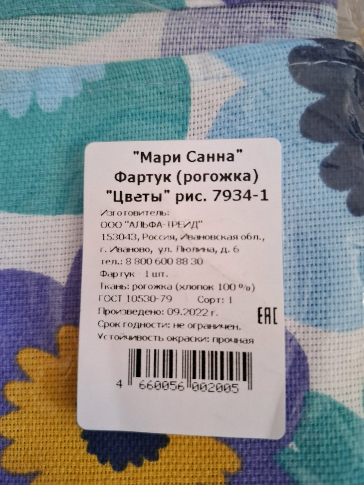 Я фартук взяла на подарок. На первый раз заказала одну, хотела посмотреть как на самом деле выглядеть. Расцветка понравилась. Были бы кармашки еще лучше было бы. И еще смущает то, что "произведено 09.2022 году". Неужели до сих пор не были проданы? Слава богу хоть "срок годности не ограничен". Для себя было бы ничего. А так для подарка что делать? Придётся наверное поменять упаковку, а то неудобно будет. Несмотря на все это заказала ещё несколько штук.