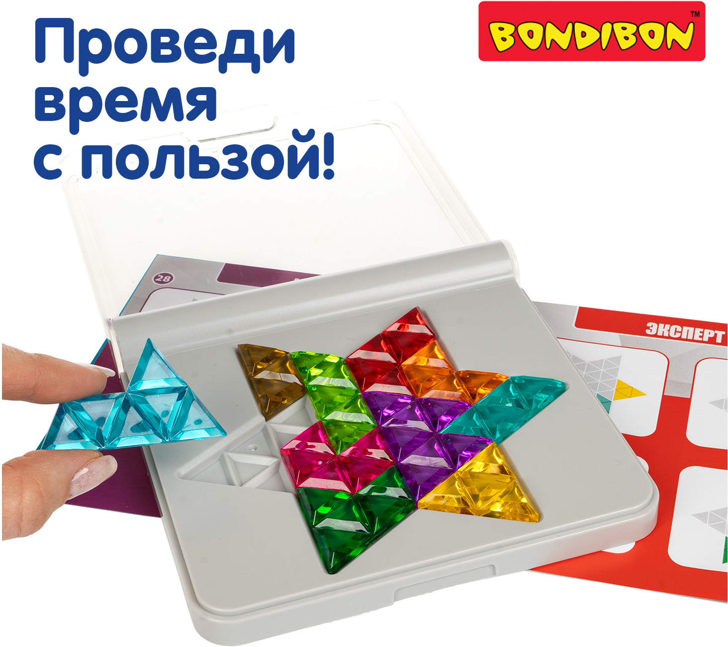 Пусть звезда логики засияет в твоих руках с логической игрой Bondibon «IQ-Вега» серии БондиЛогика. Эта яркая и компактная настольная головоломка, с игровым полем в виде шестиконечной разноцветной звезды станет вашим верным спутником в путешествиях, на перемене или просто в минуты, когда хочется размять мозг. «IQ-Вега» развивает мелкую моторику, логическое мышление, пространственное восприятие, креативные способности и фантазию у детей и взрослых.