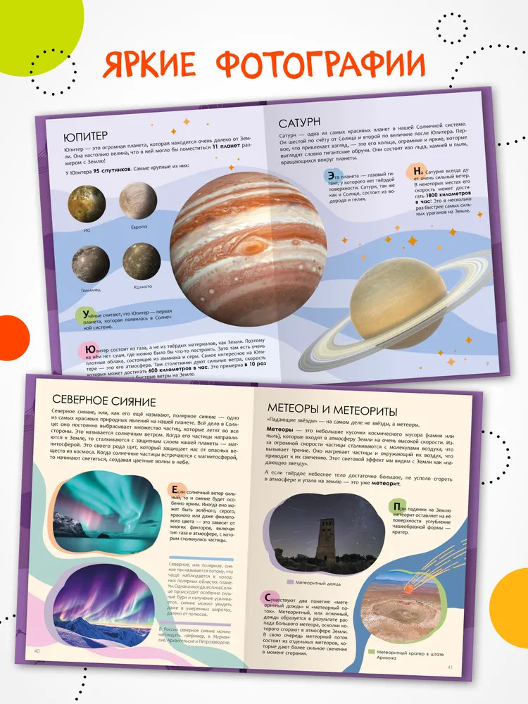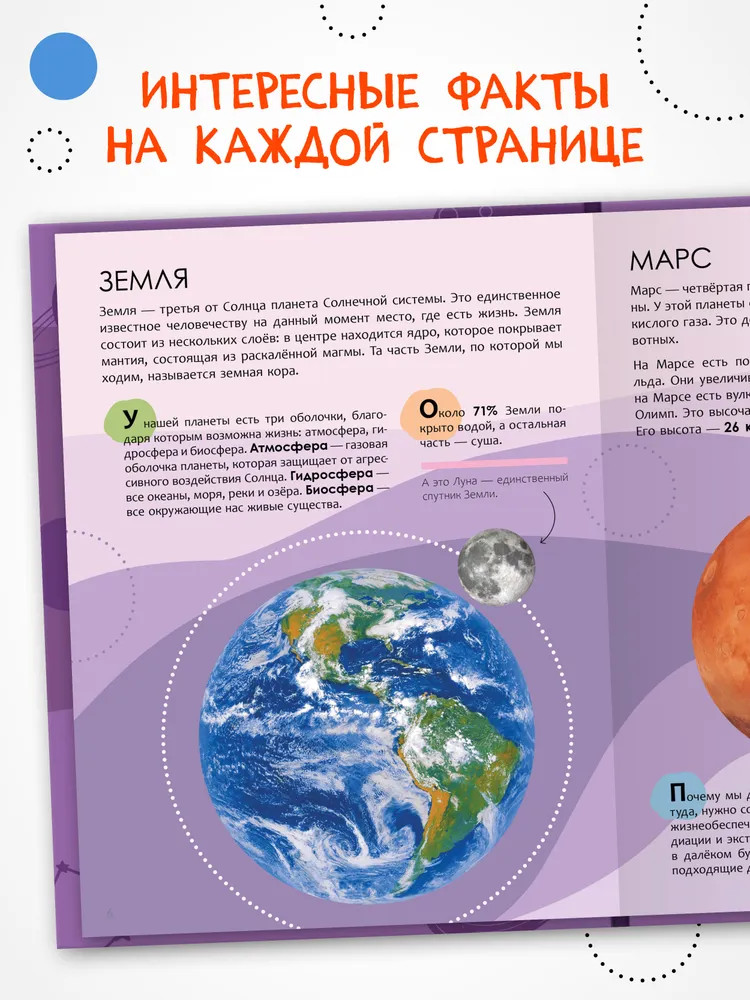 💳 Оплатить за товар можно при получении 🇰🇿 Есть бесплатная доставка по Казахстану от 1 дня 🎁 Копите бонусы с каждой покупки Серия: Детская энциклопедия Книга Земля и космос серии Детская энциклопедия идеальный подарок для любознательного ребенка. Благодаря этой книжке ребенок сможет поближе познакомиться с планетами Солнечной системы, а также с устройством земного шара и узнать, что такое круговорот воды в природе и почему так важен кислород для всего живого на Земле. Интересные факты проиллюстрированы яркими фотографиями и понятной инфографикой, которые помогут полностью погрузиться в изучение предмета и узнать новое об окружающем мире. |