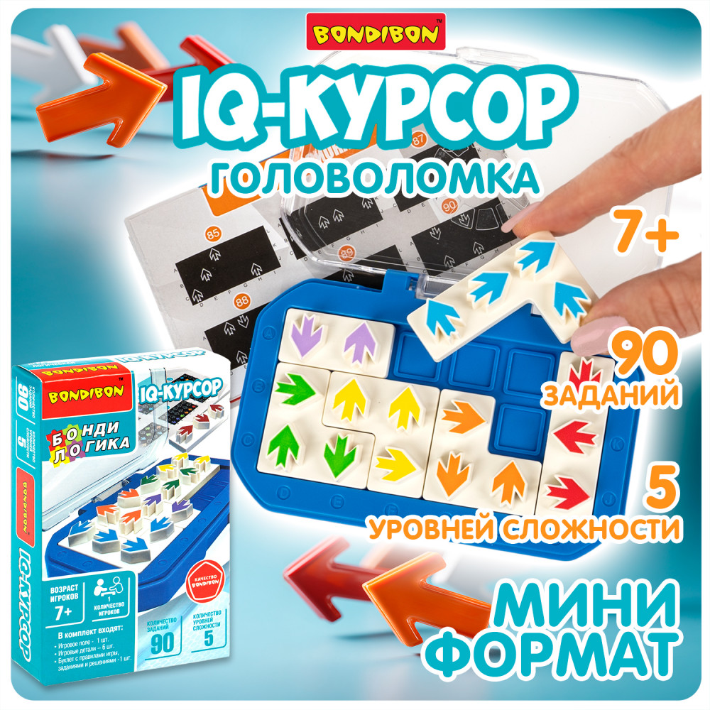 Проверь свою логику и ориентацию в пространстве — расставь курсоры правильно! Настольная игра-головоломка «IQ-Курсор» из серии Бондилогика от Bondibon — это компактная, но насыщенная развивающая игра с 90 заданиями и 5 уровнями сложности. Игроку предстоит размещать стрелочные фишки на игровом поле по условиям заданий, соблюдая направление, форму и расположение. Каждая задача требует внимательности, логики и стратегического подхода. Уровни от «Новичка» до «Профессионала» подойдут и детям, и взрослым. «